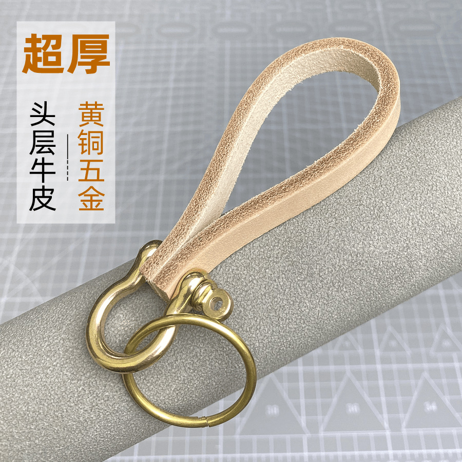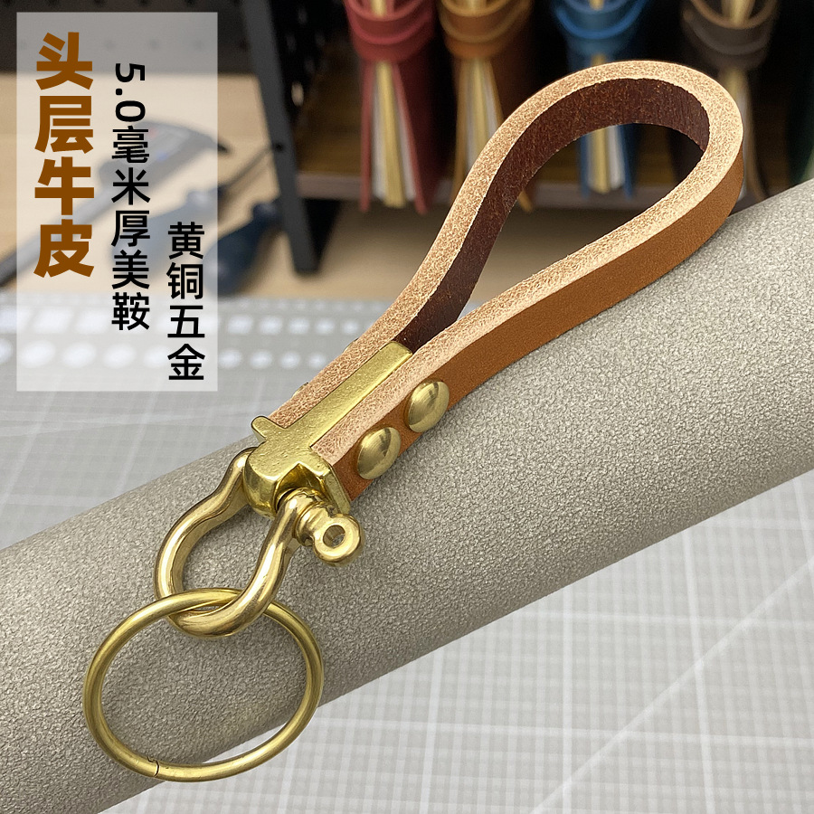 手作りレトロ重機厚い牛革キーホルダーアメリカンサドル植物タンニンなめし真鍮馬蹄バックルペンダントリング本革ライト高級カスタマイズ