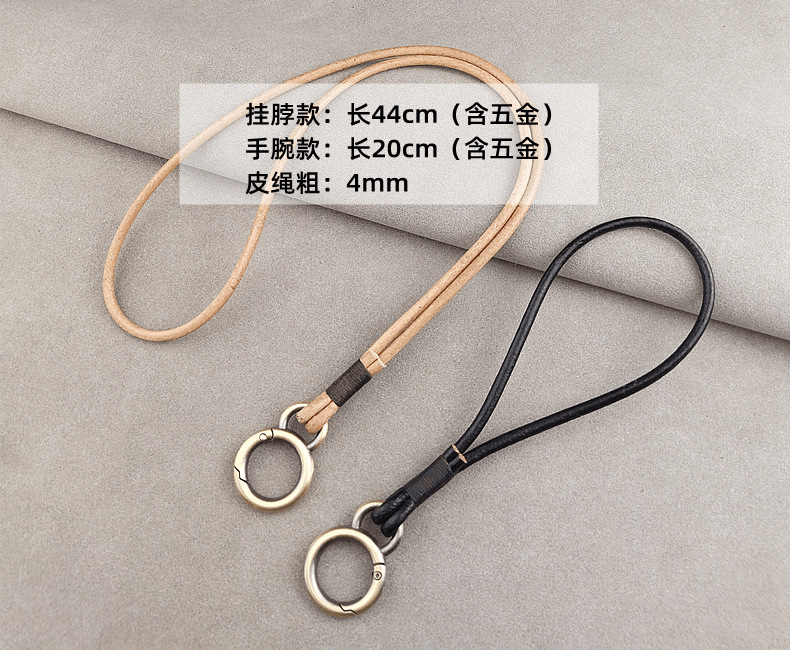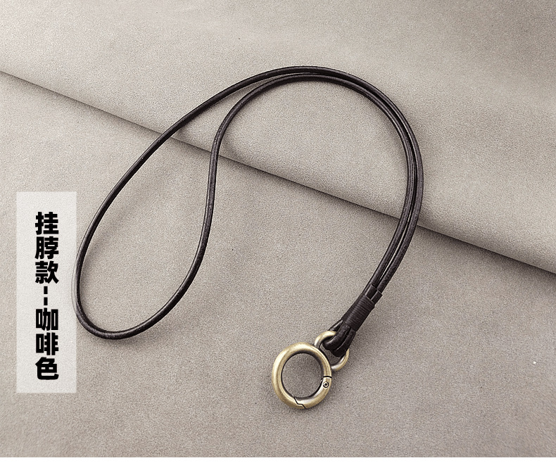 皮绳钥匙扣防丢挂脖绳简约真皮手工腕带汽车钥匙圈复古挂件锁匙扣
