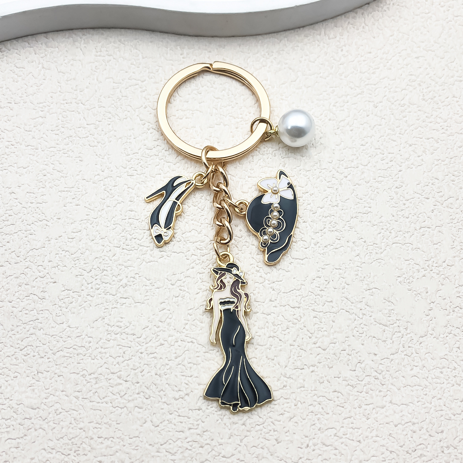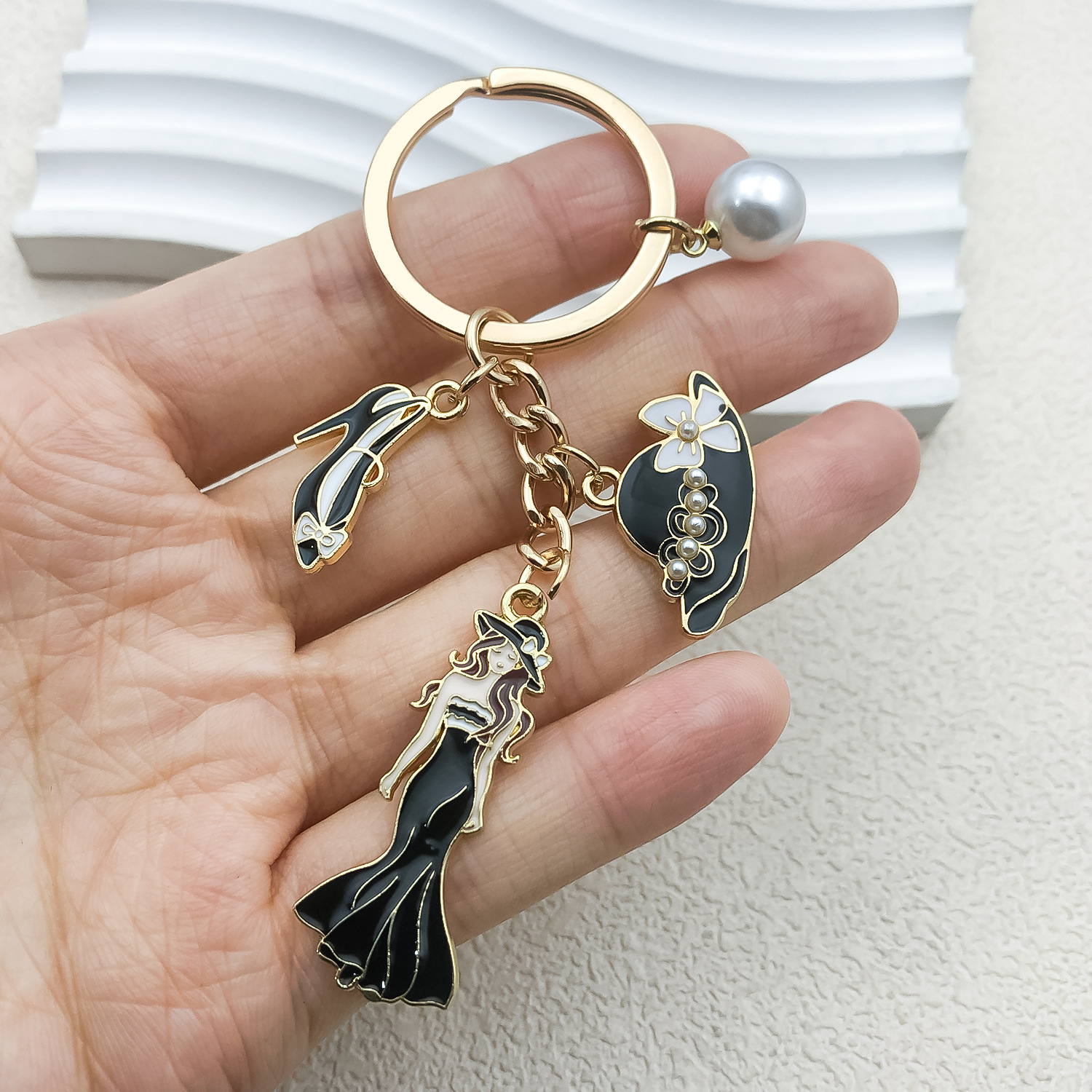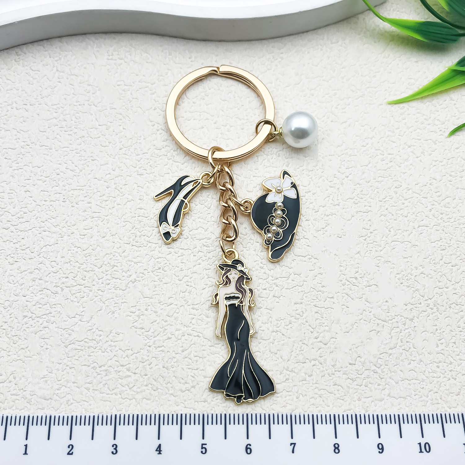 新しい黒のリボンパールシルクハットキーホルダーリング女性のバックパッククロスボディバッグ装飾小さなペンダントクロスボーダー