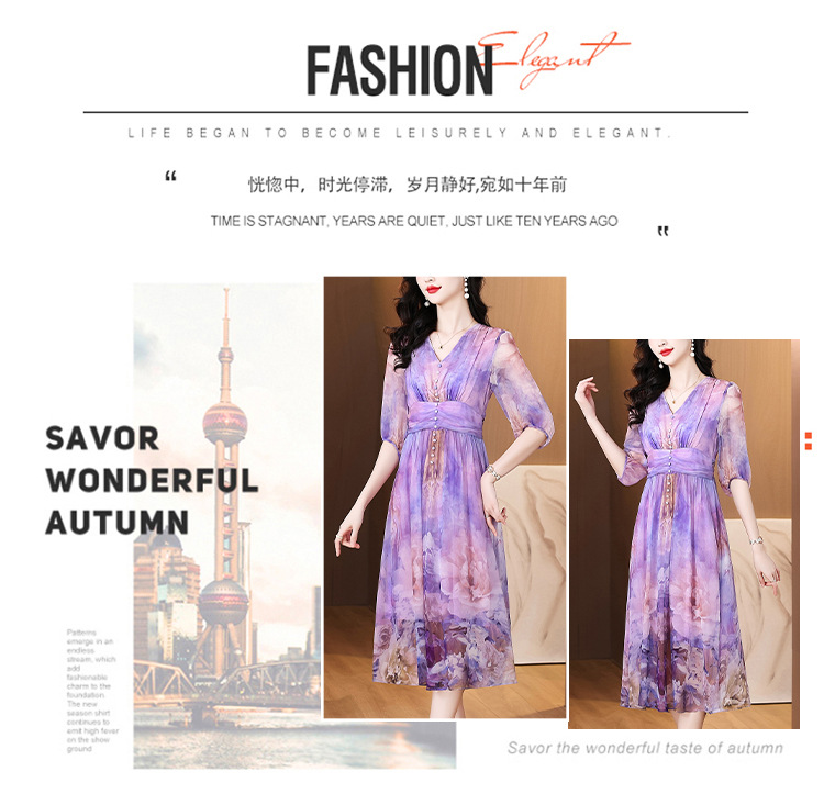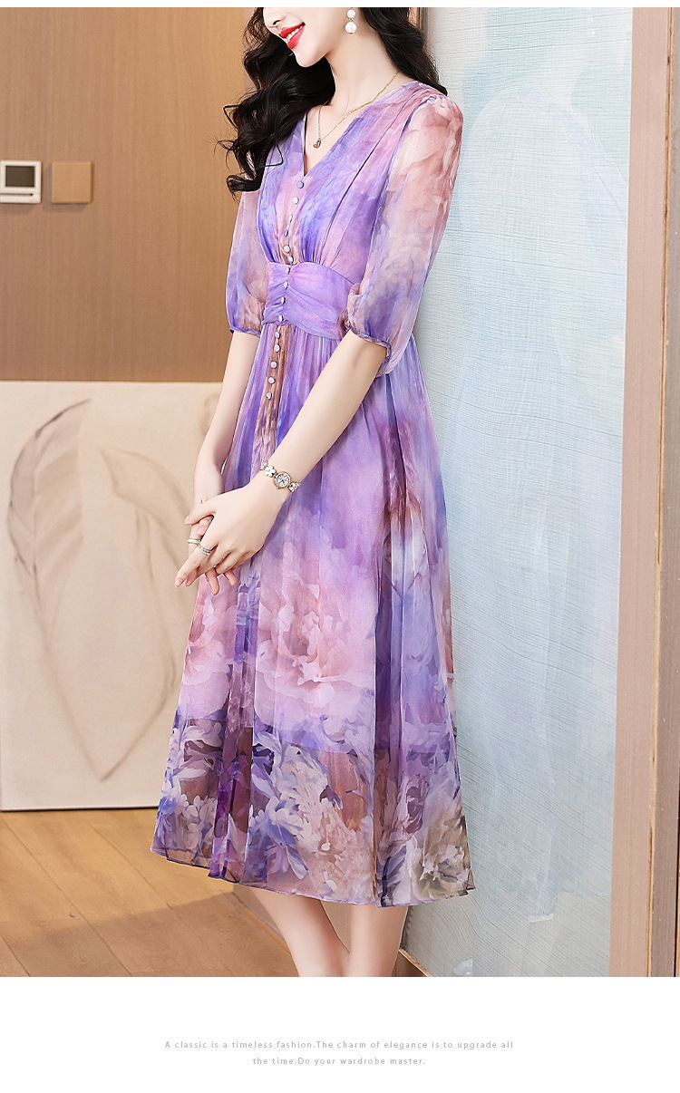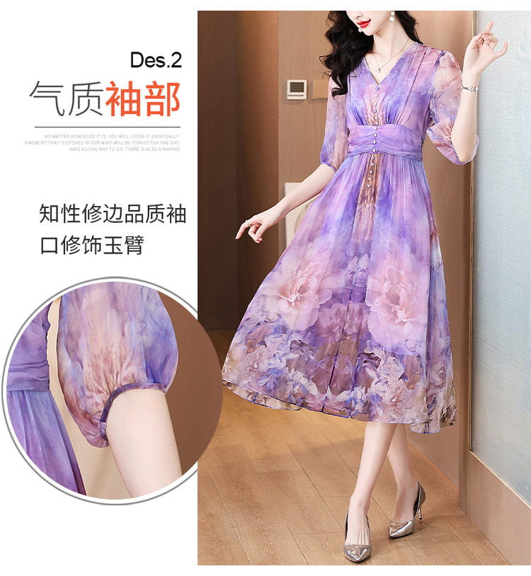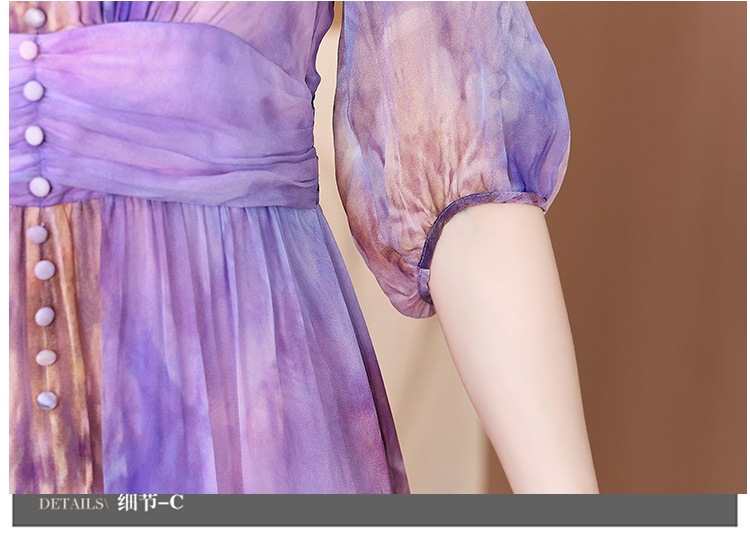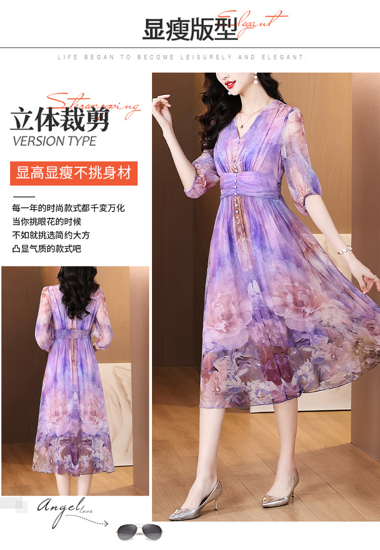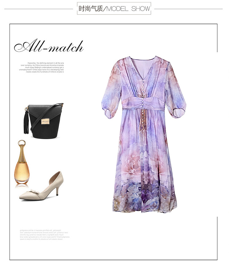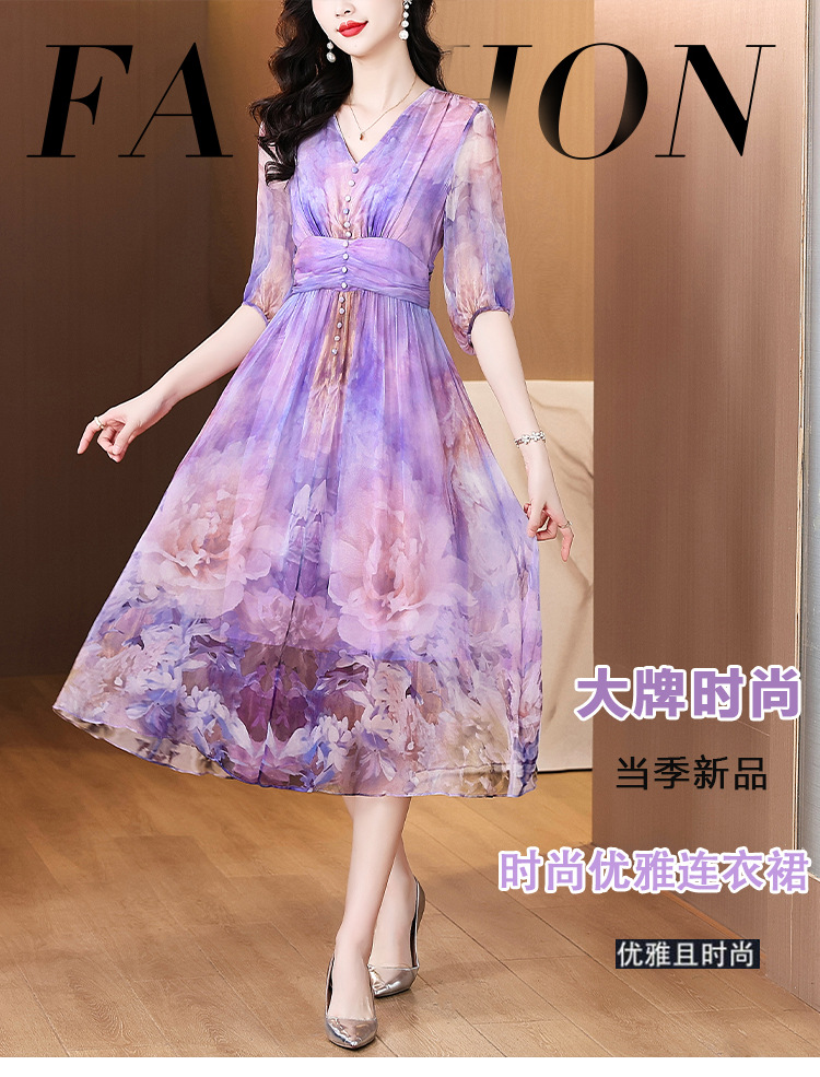 Zyfs 3996リゾート風vネックプリントワンピース女性2025夏の新作ファッション