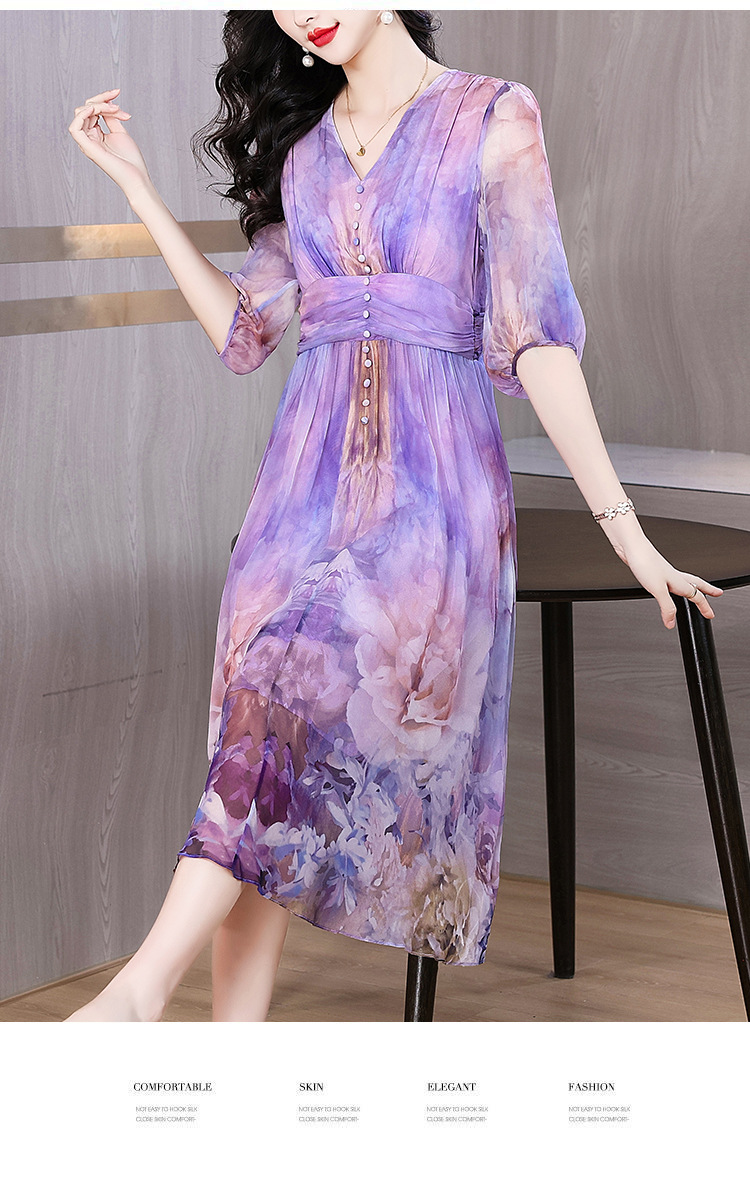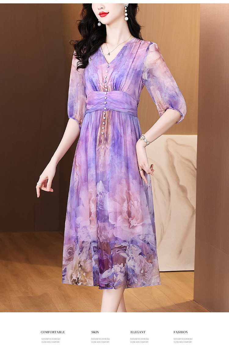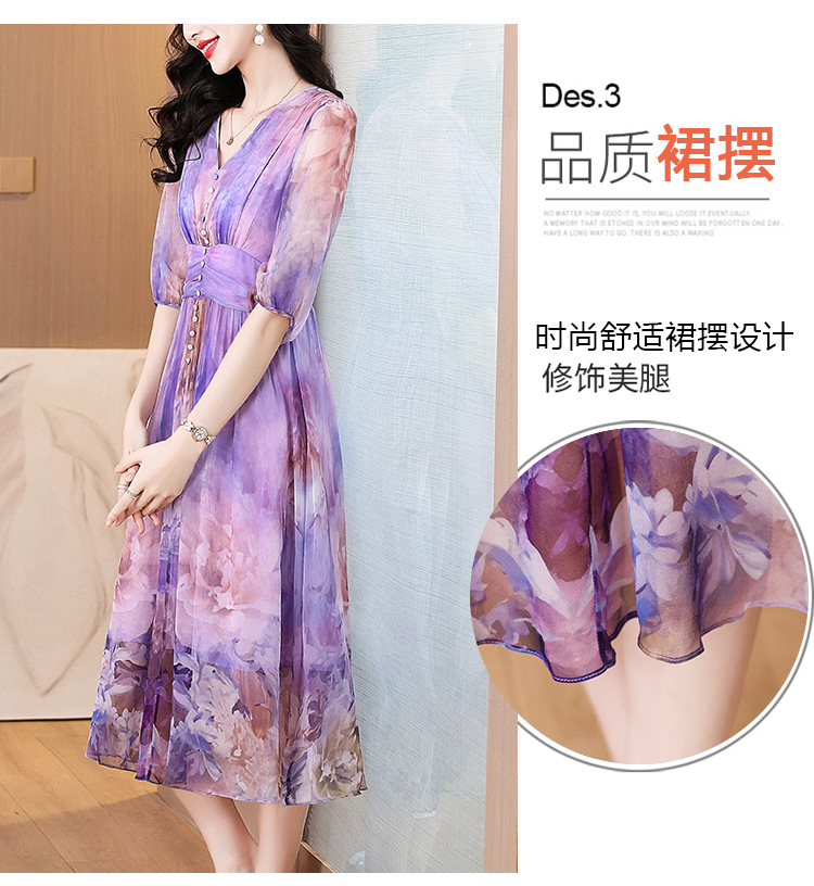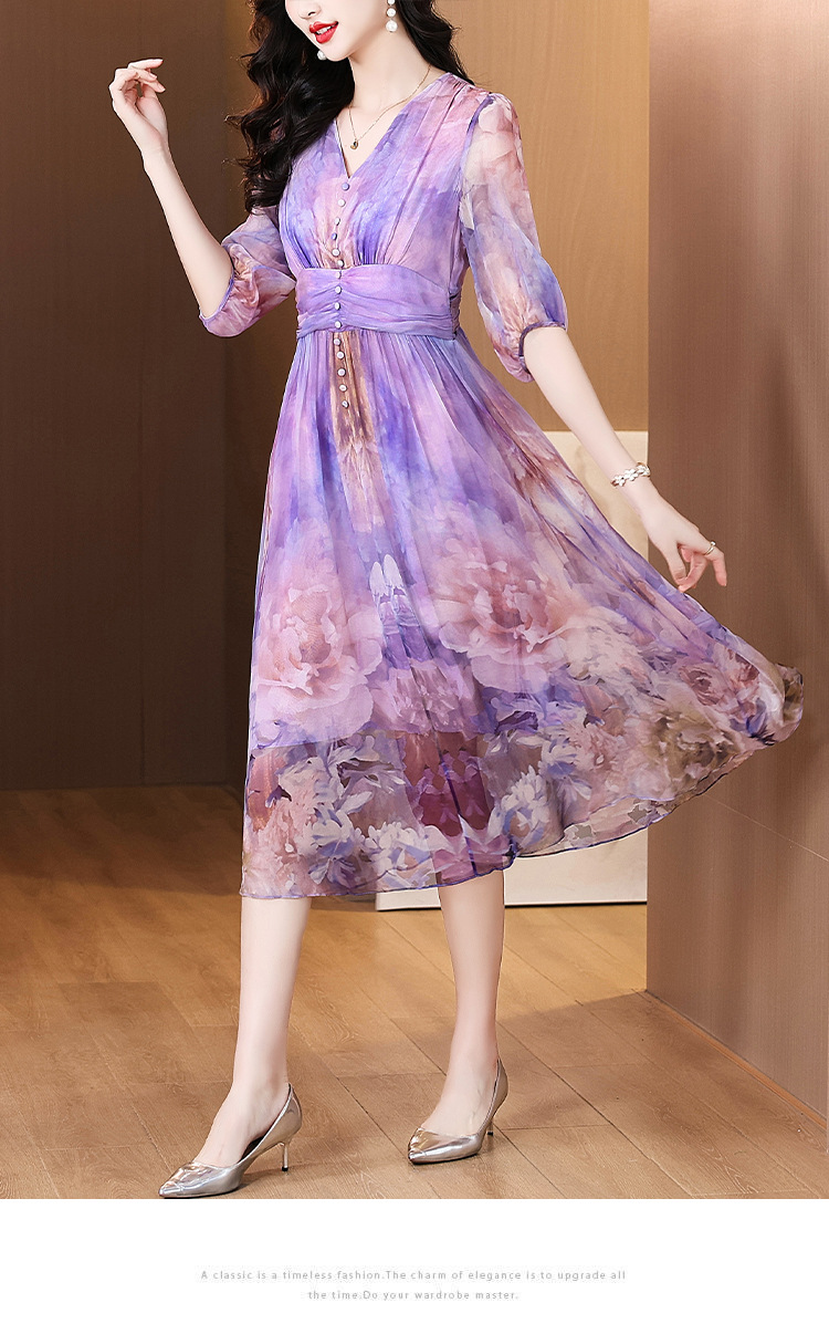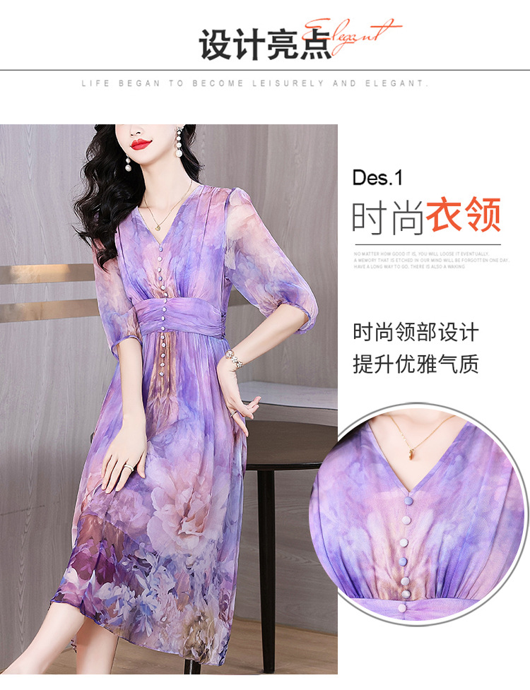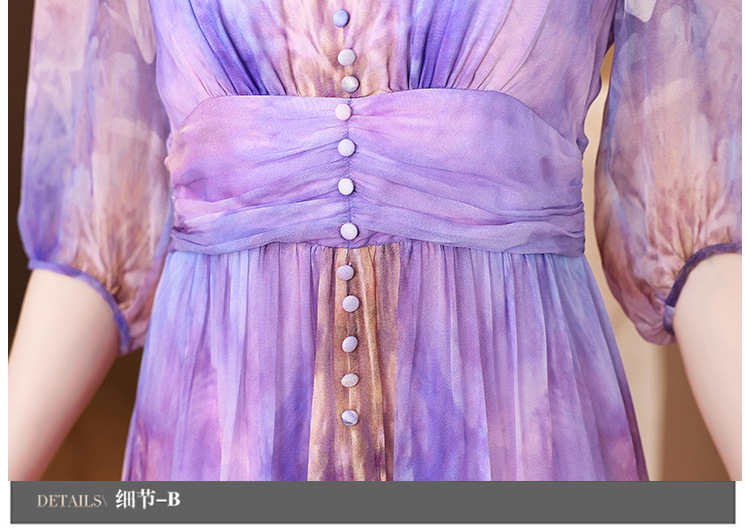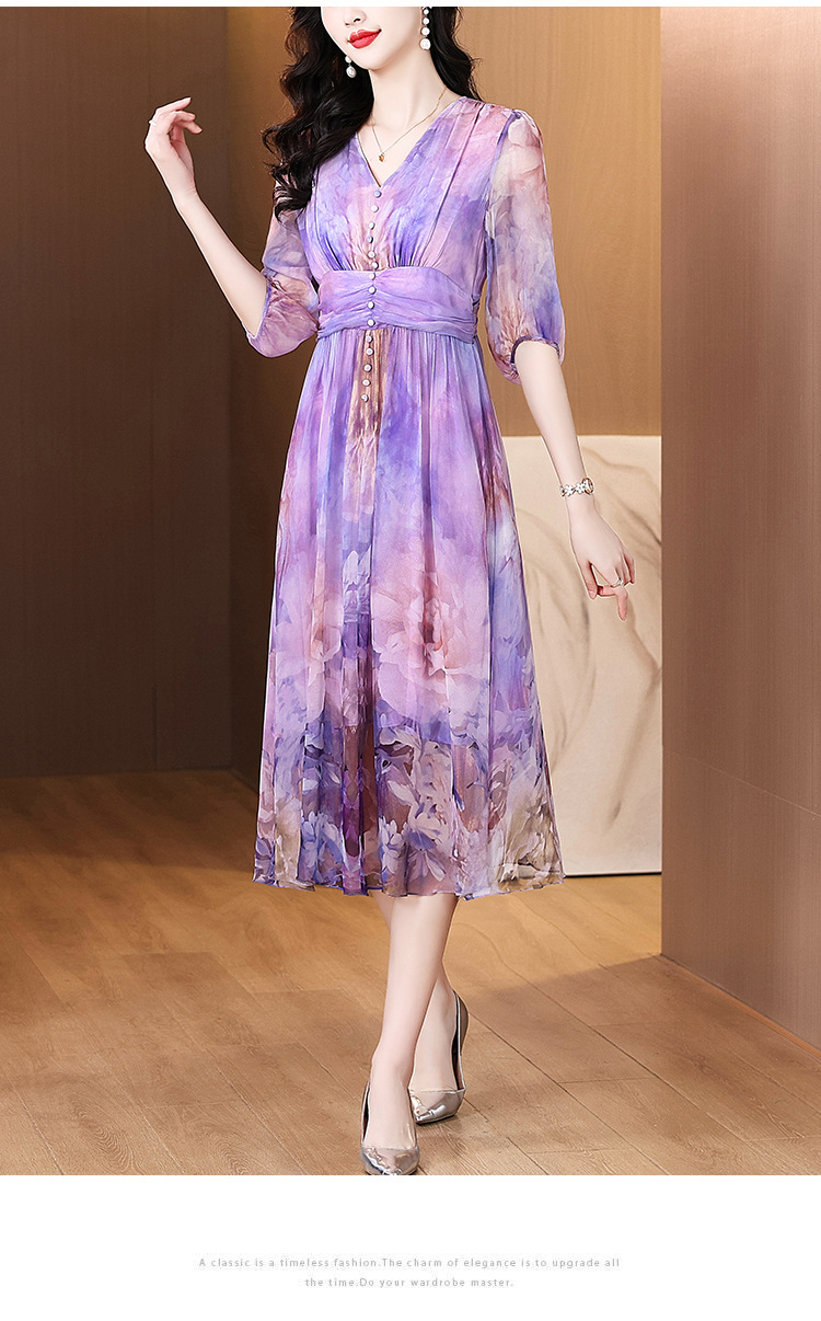 Zyfs 3996リゾート風vネックプリントワンピース女性2025夏の新作ファッション