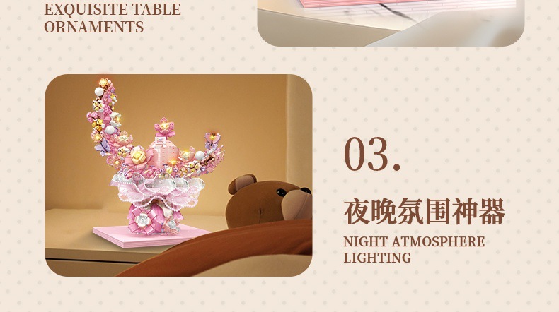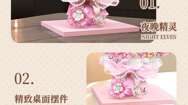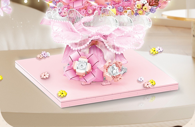 潮楽創永生花積み木ひまわりバラカーネーション芙蓉盆栽互換レゴ置物卸売り