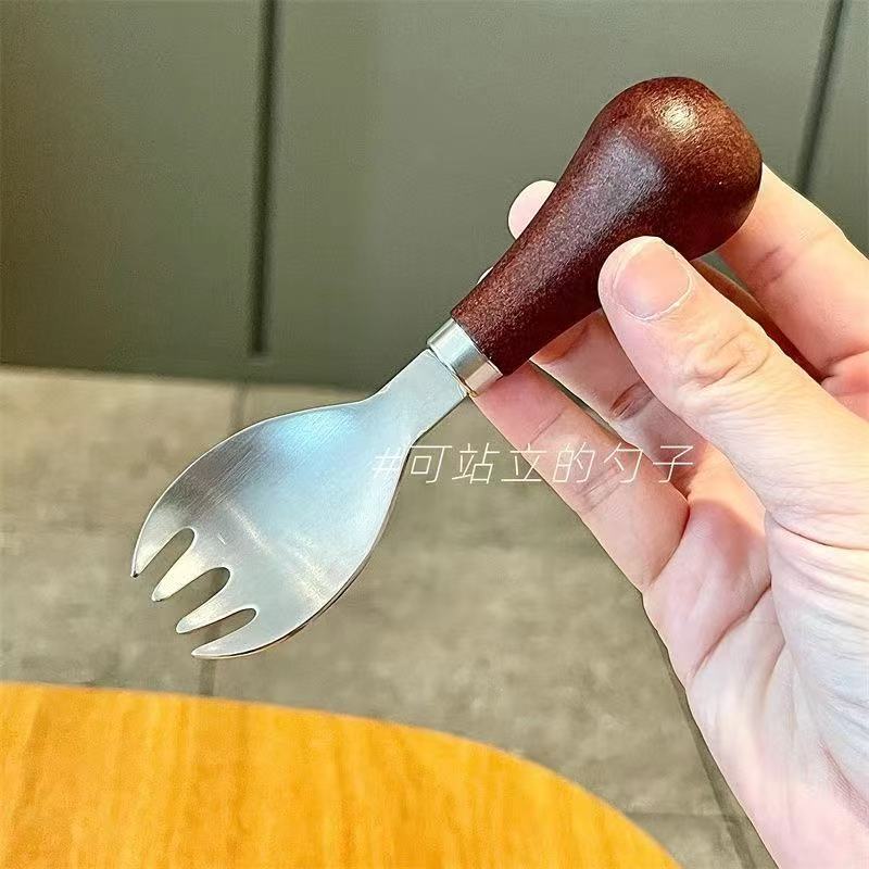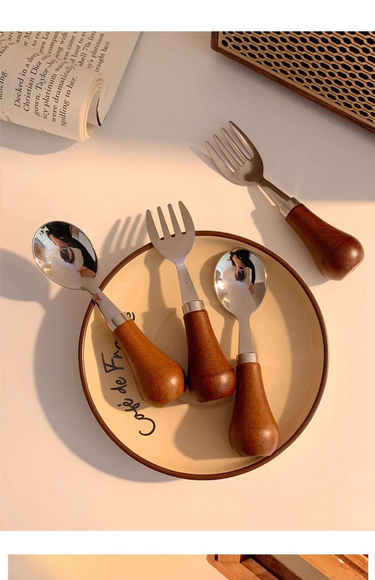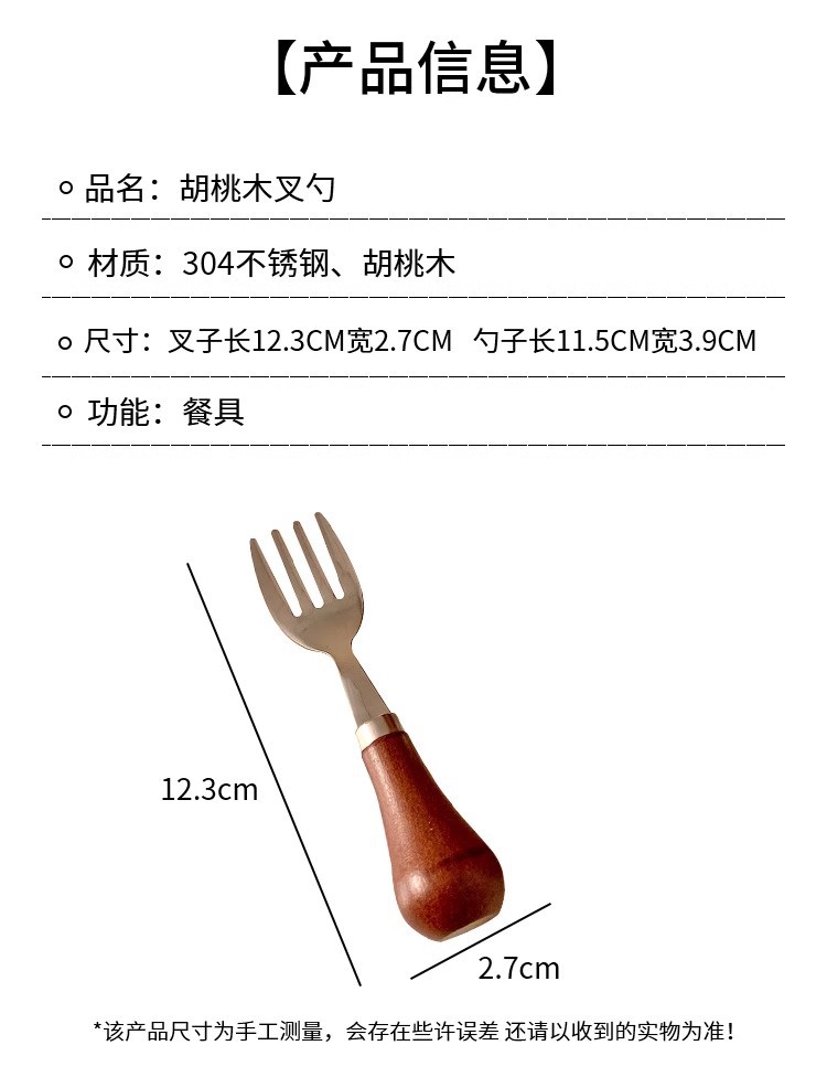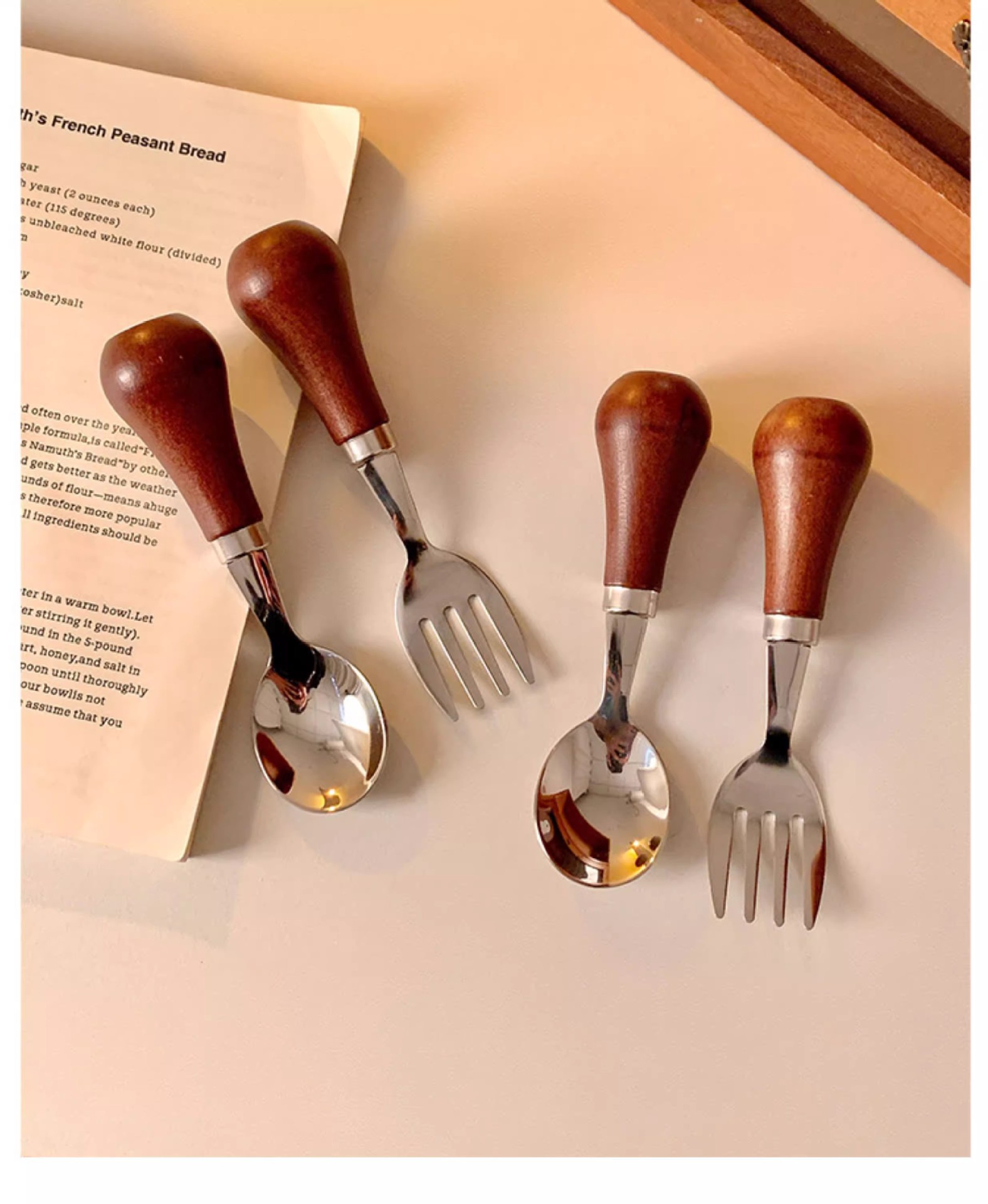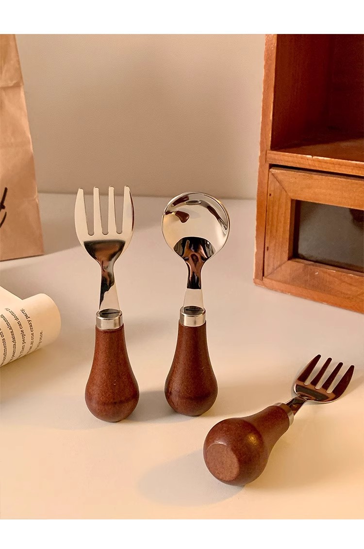 胡桃木304ステンレスフォークスプーンセット食器大人子供用デザートスプーンスイカフォーク立ちスプーン