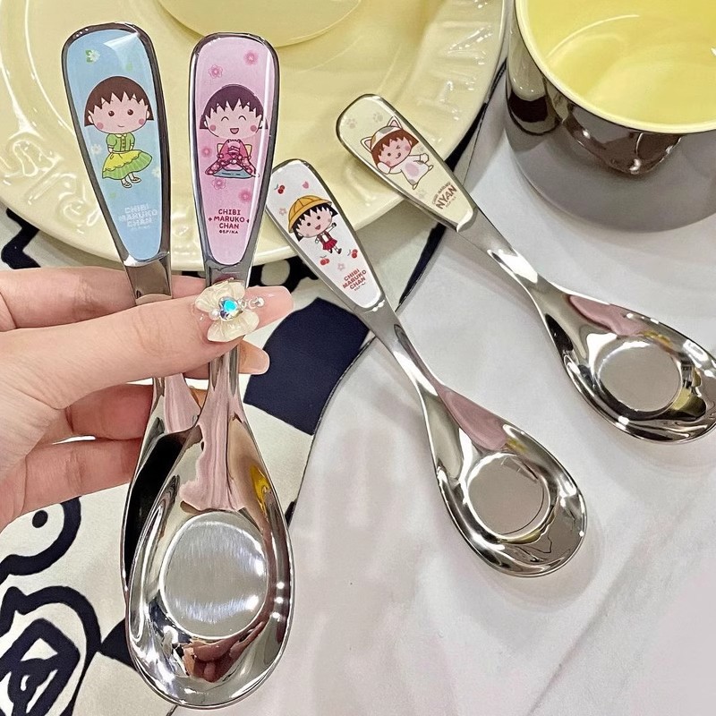 ちびまる子ちゃん 304 ステンレス鋼子供用スプーンかわいいインゴットスプーン家庭用ロングハンドルスプーンデザートスプーン