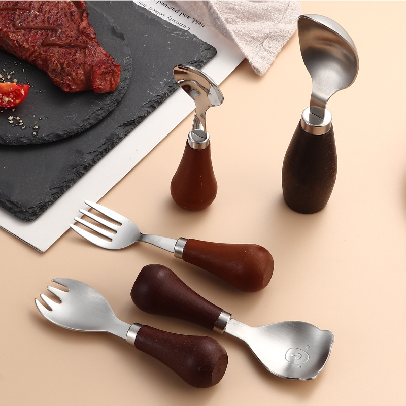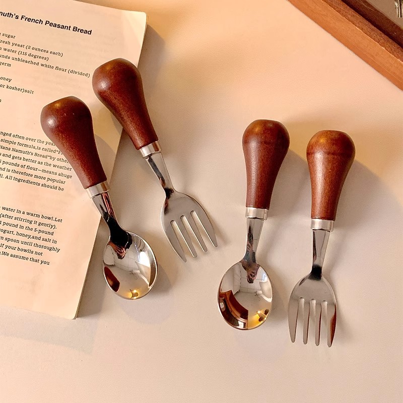 胡桃木ステンレスフォークスプーンセット食器大人子供用スープスプーンアイスクリームスイカデザートスプーン