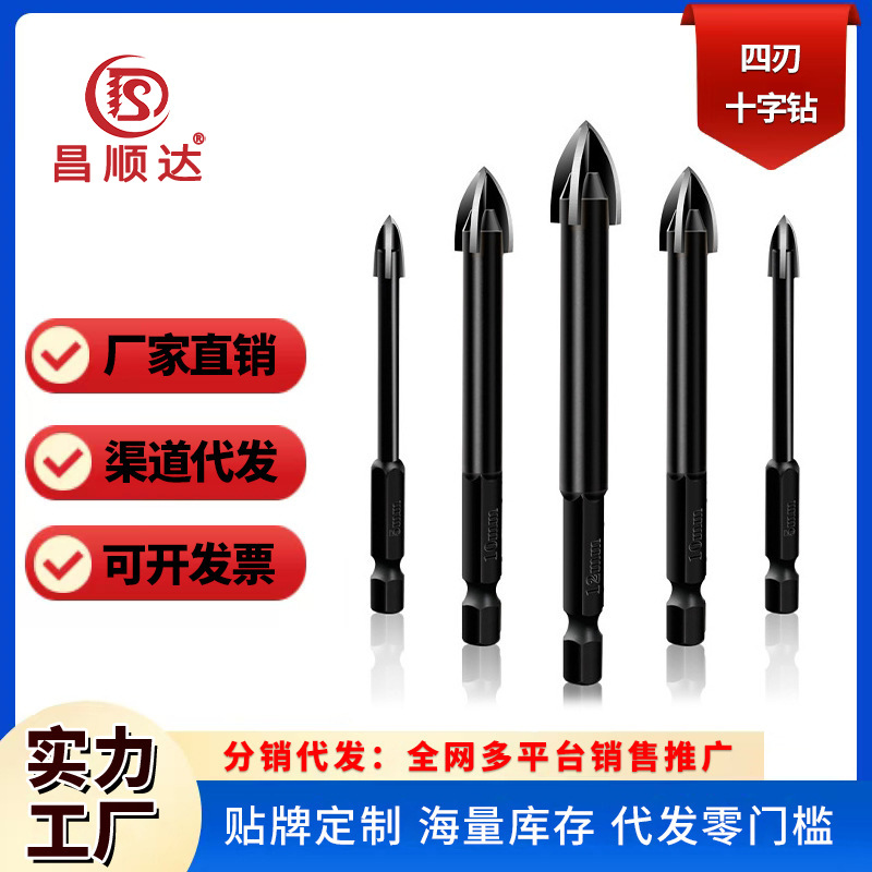ショート六角クロスドリルガラスセラミック合金ドリルビットタイル大理石四刃ドリル