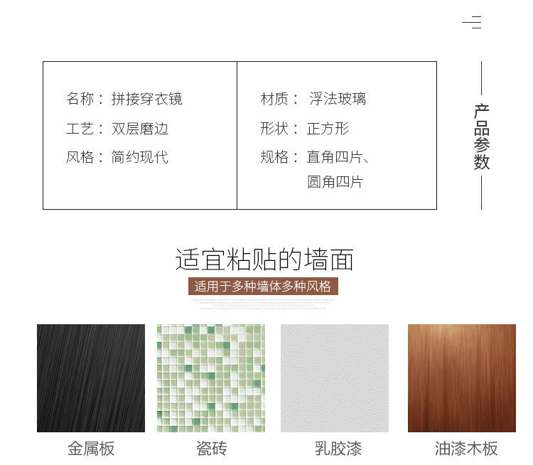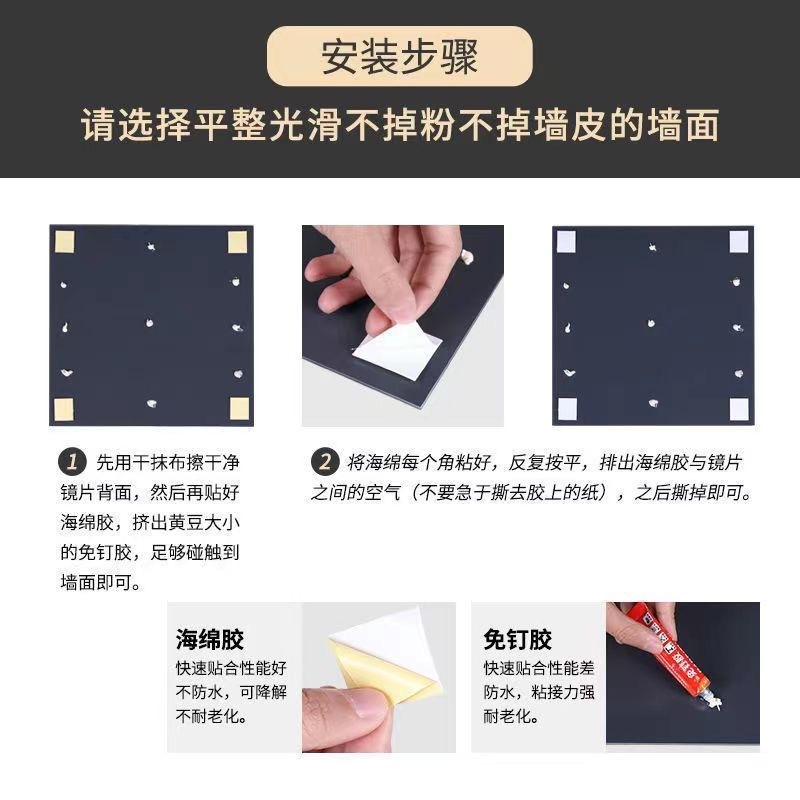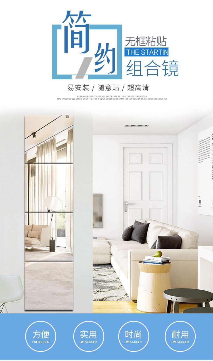 ドレッシングミラー、寝室ワードローブ、手作り組み合わせスプライシングミラー、正方形防爆粘着壁ミラー、全身ミラー、粘着強化ミラー