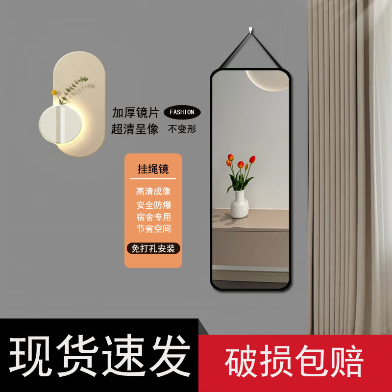 ストラップ付きドレッシングミラー、学生寮のドアミラー、全身鏡、寝室の家庭用壁掛け全身ミラー、パンチングなし