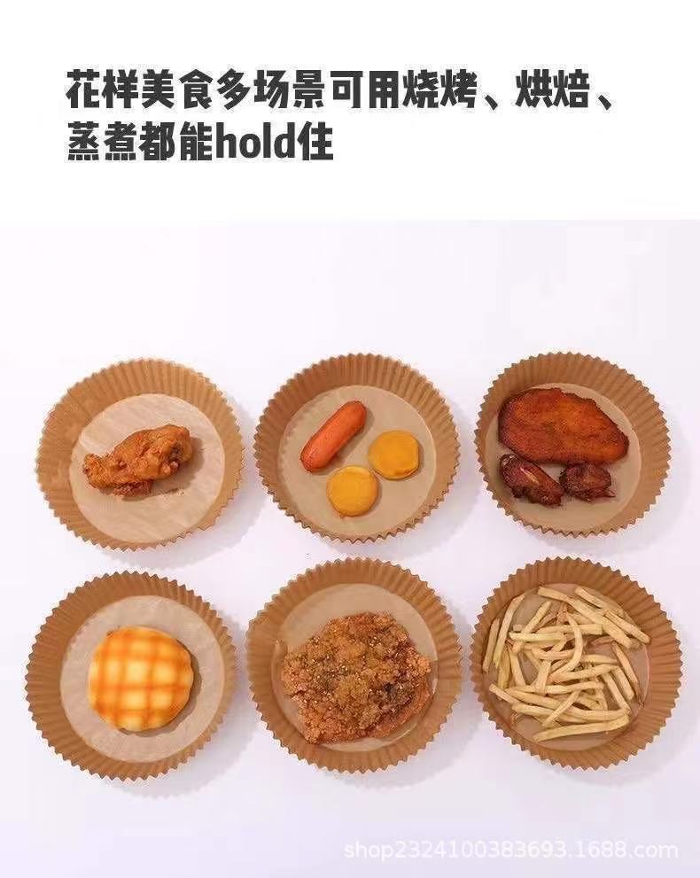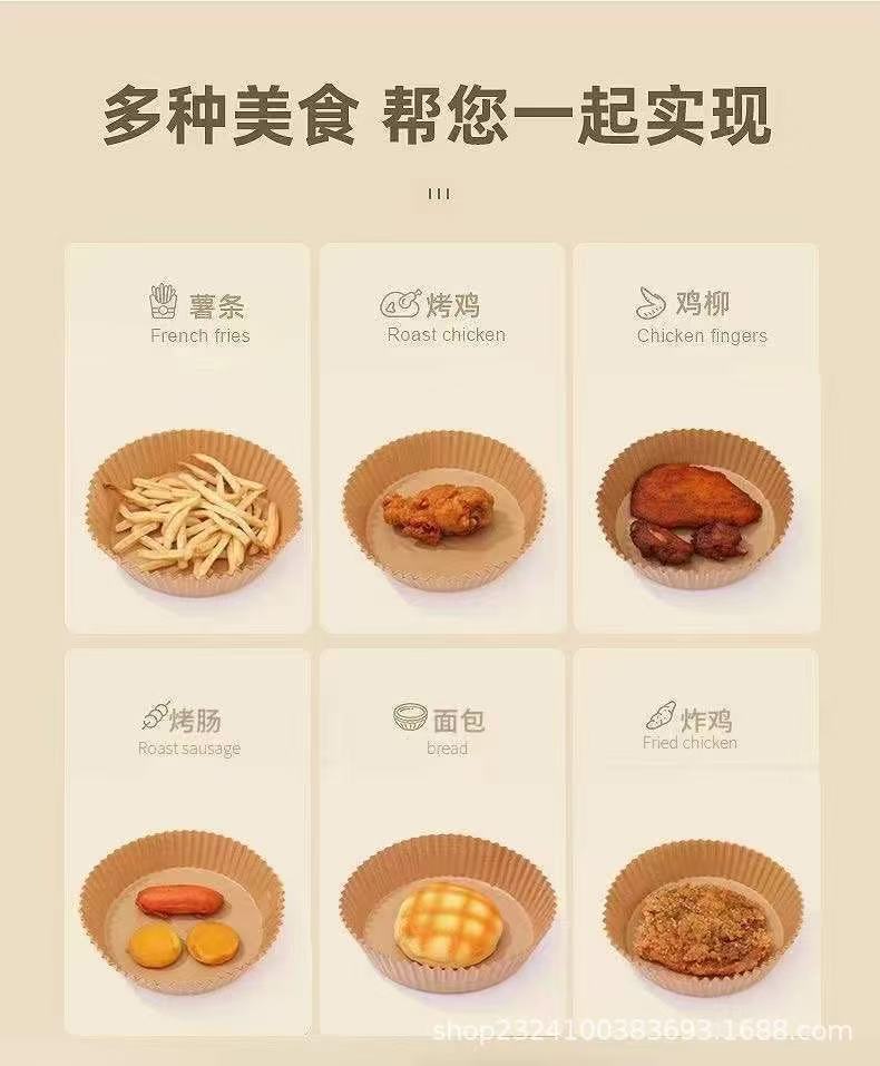 食品グレードのエアフライヤー専用紙、油吸収紙、家庭用食品用シリコーンオイルペーパー、ベーキングペーパートレイを直接供給