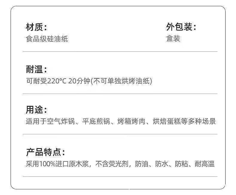 空气炸锅专用纸方形家用吸油纸食物专用耐高温硅油纸垫纸工具油纸