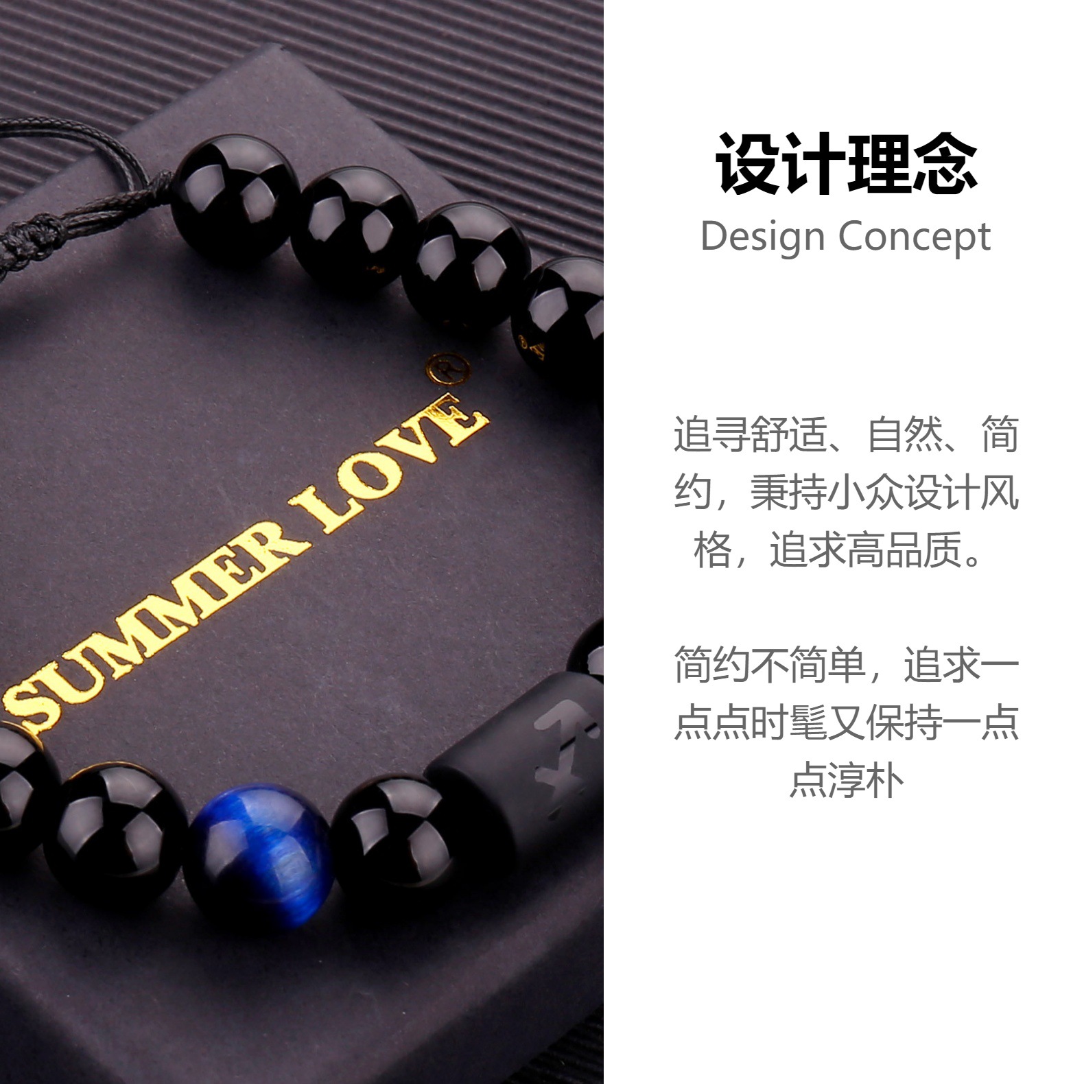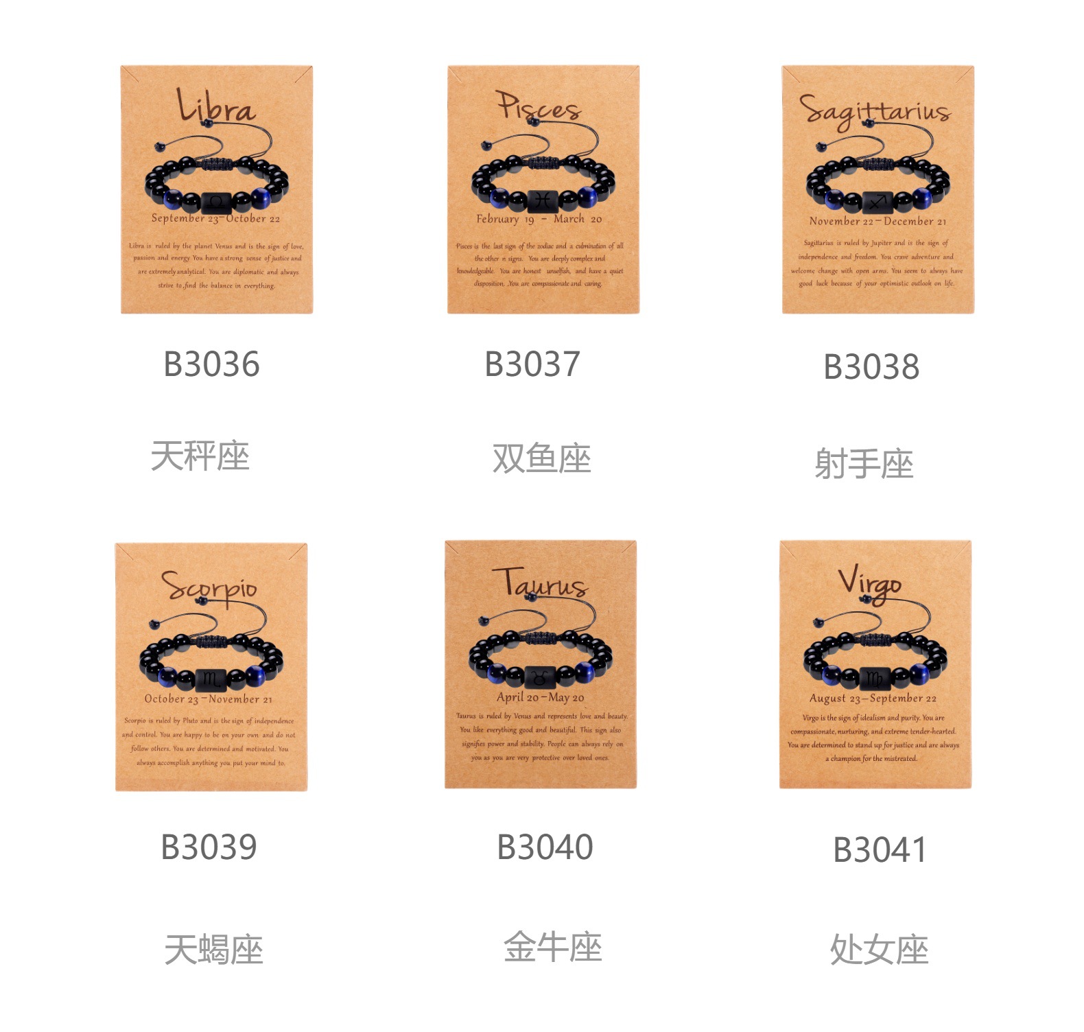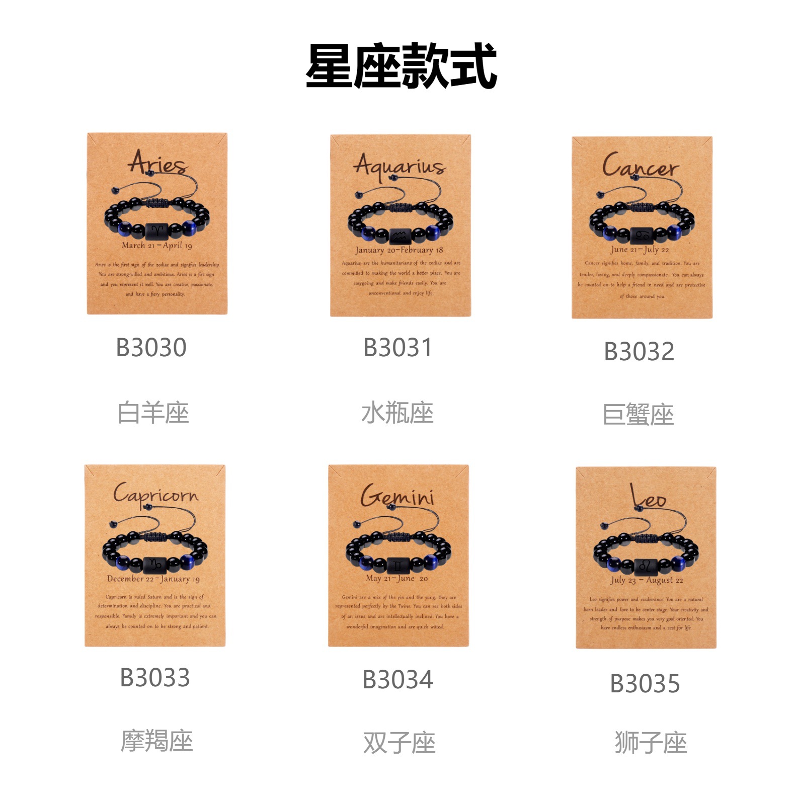 国境を越えた人気の12星座ビーズブレスレット、男性と女性用の編み込みブレスレット、天然ブルータイガーアイビーズブレスレット、外国人ハンドアクセサリー