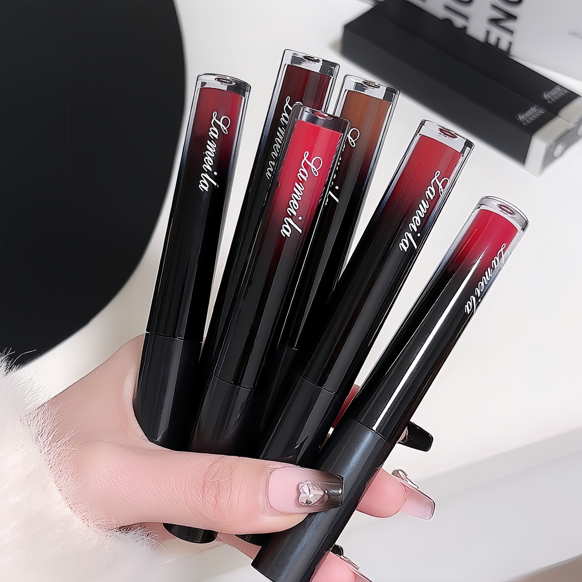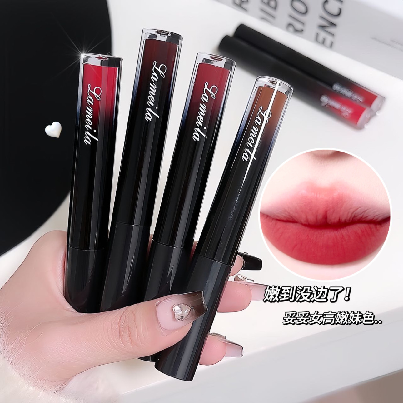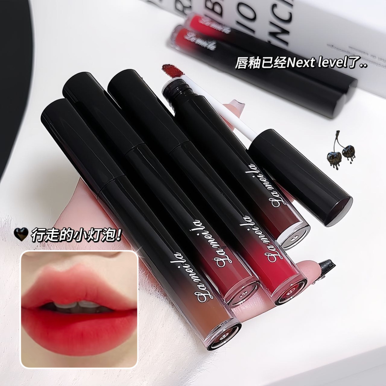 低彩度マットマットリップグレーズ、長持ち、カップにつきにくい、学生向けの無地の美白口紅、女性用チェリーカラーリップグロス