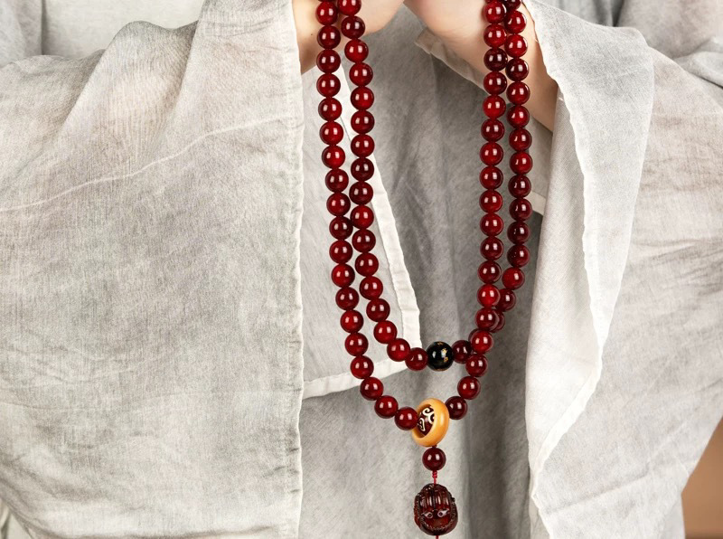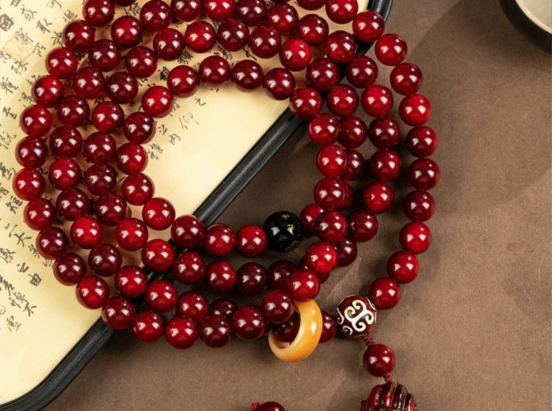 インペリアルブラッドドラゴンウッドブレスレット翡翠パインミングル子半透明ログビーズ 108 ブレスレット男性と女性のための仏ビーズ