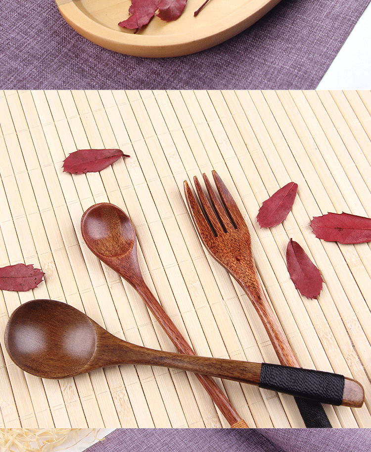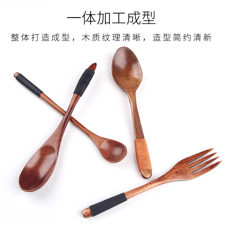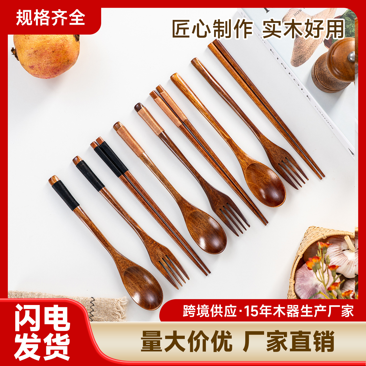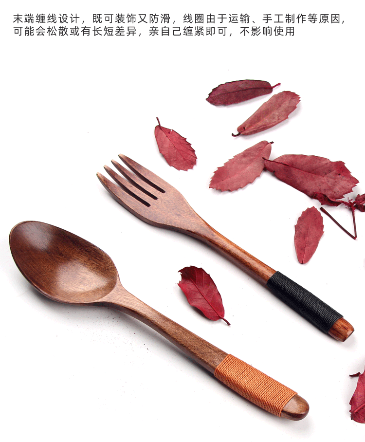 楠木日式餐具缠线筷子勺子叉子布袋家用便携三件套儿童汤勺批发