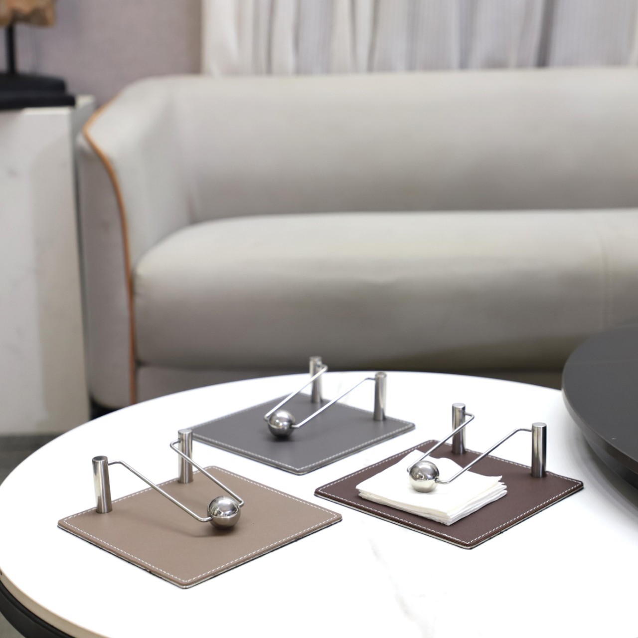 現代のシンプルなステンレスの皮革の四角形の定点のティッシュの棚の装飾の置物の客間のレストランの寝室の家庭の装飾品