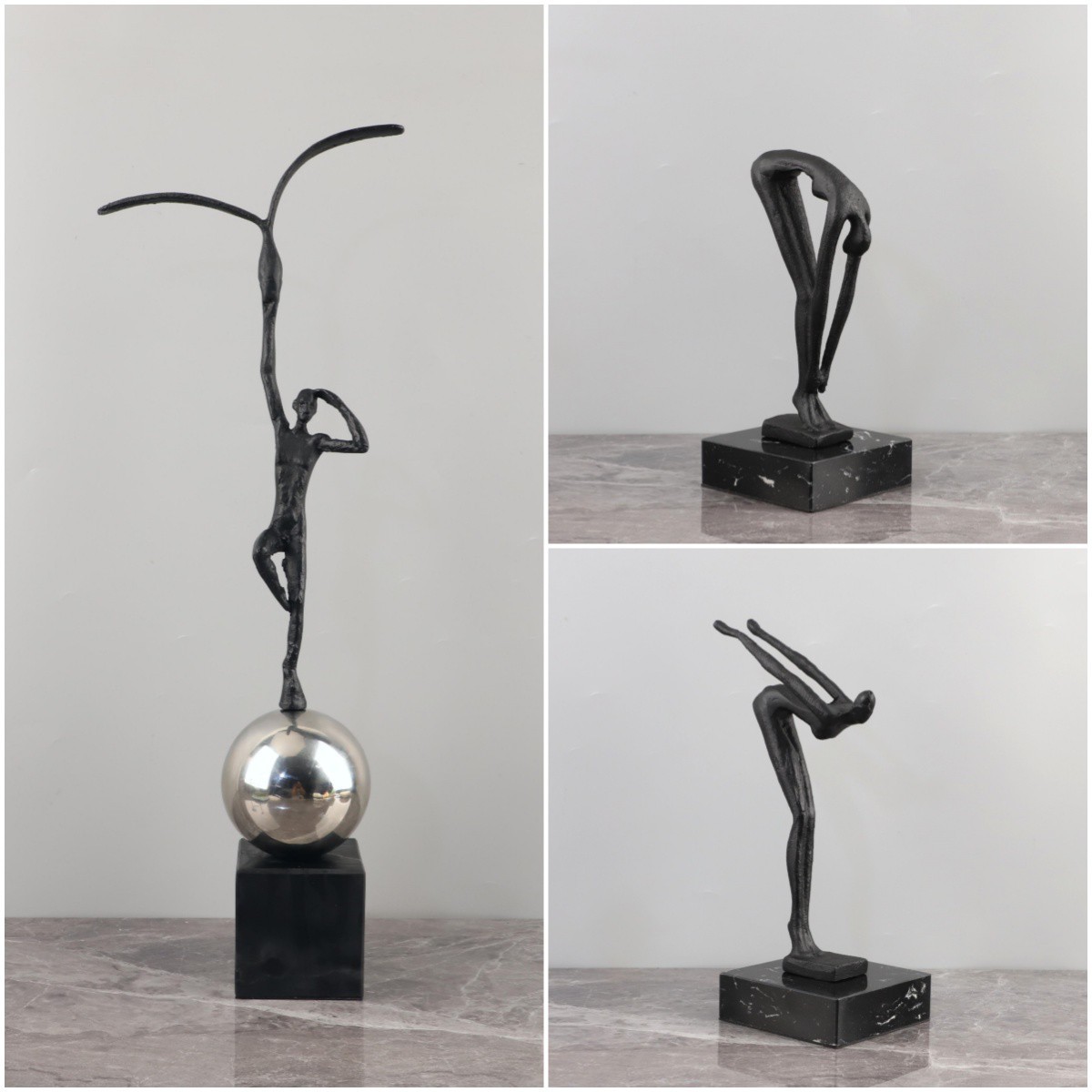 北欧の創意的な幾何学の抽象的な鋳鉄の人物の彫刻は玄関の書斎のテレビの戸棚の柔らかい装飾品を並べます。