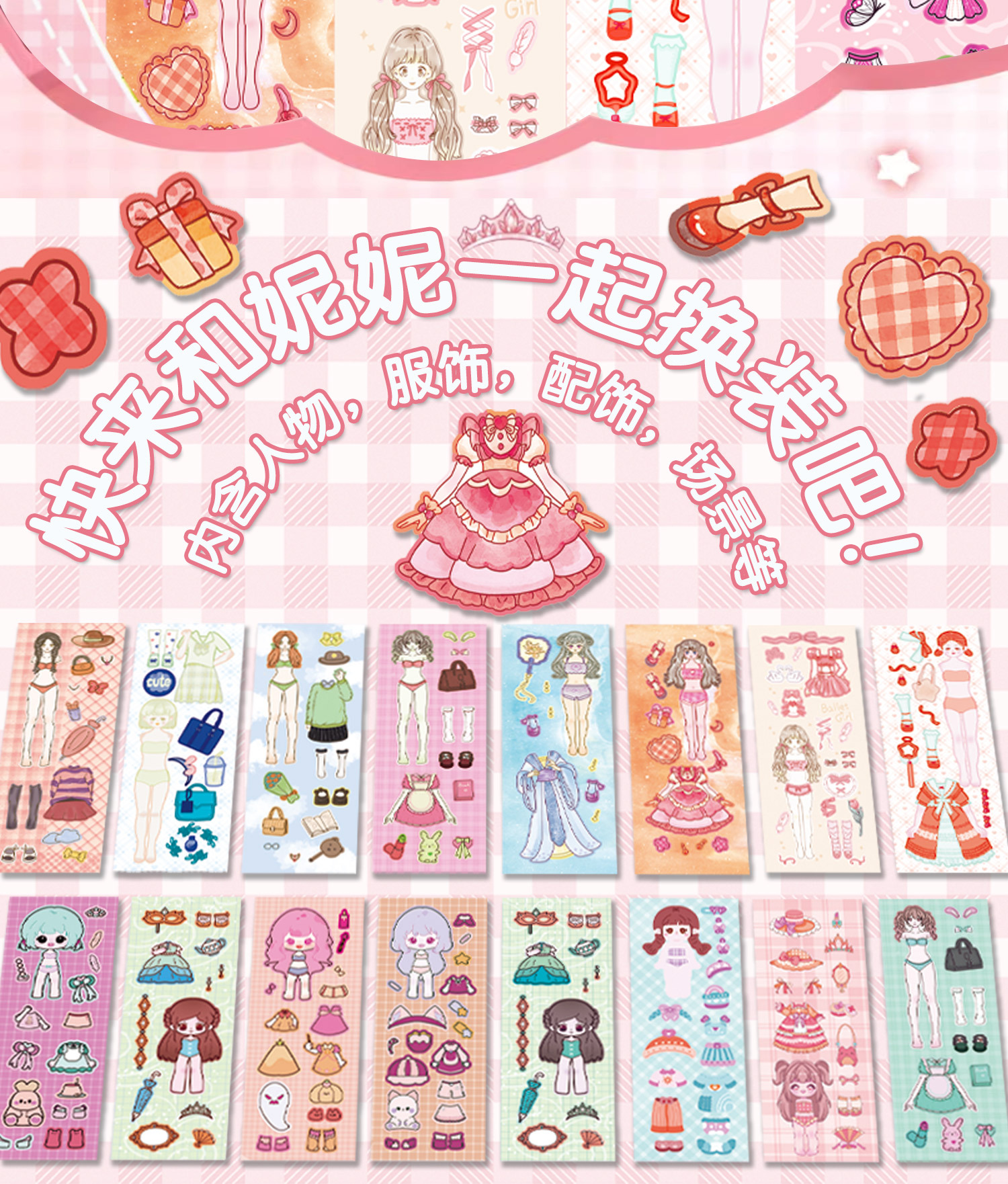 可爱风换装公主贴纸精致粘贴画儿童diy女孩子手工玩具贴纸书手帐