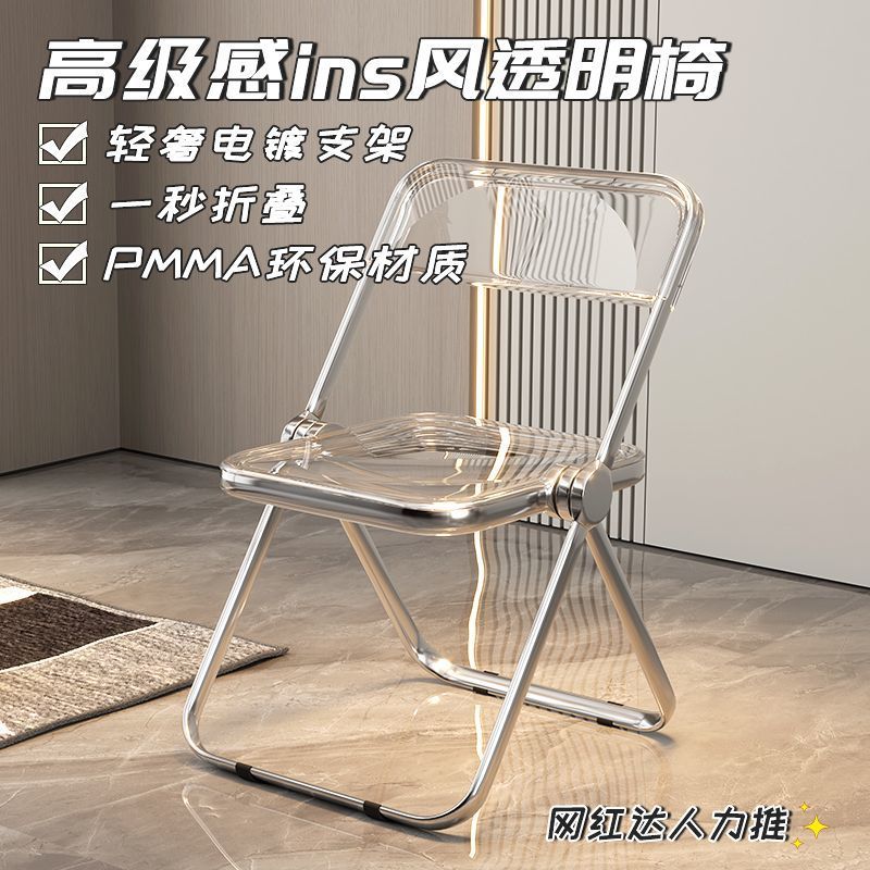 ファッションinsスツールネット赤化粧椅子写真椅子携帯家庭用折り畳み椅子アクリル椅子透明椅子