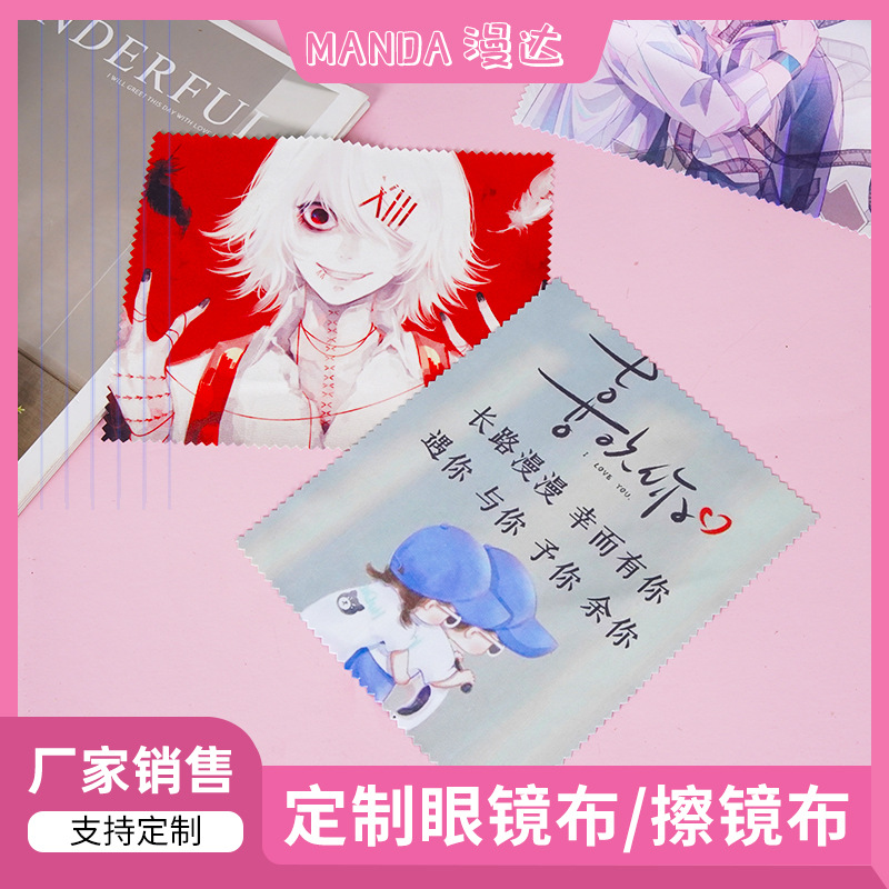 熱転写漫画風スエードメガネ拭き、携帯電話用万能レンズ拭き、写真入りカスタムメガネ拭き、カスタムメイドメガネ拭き