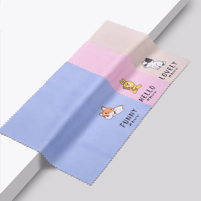 針一メガネ布工場は超微細繊維鹿皮拭き熱転写プリント高精細メガネ布を供給している