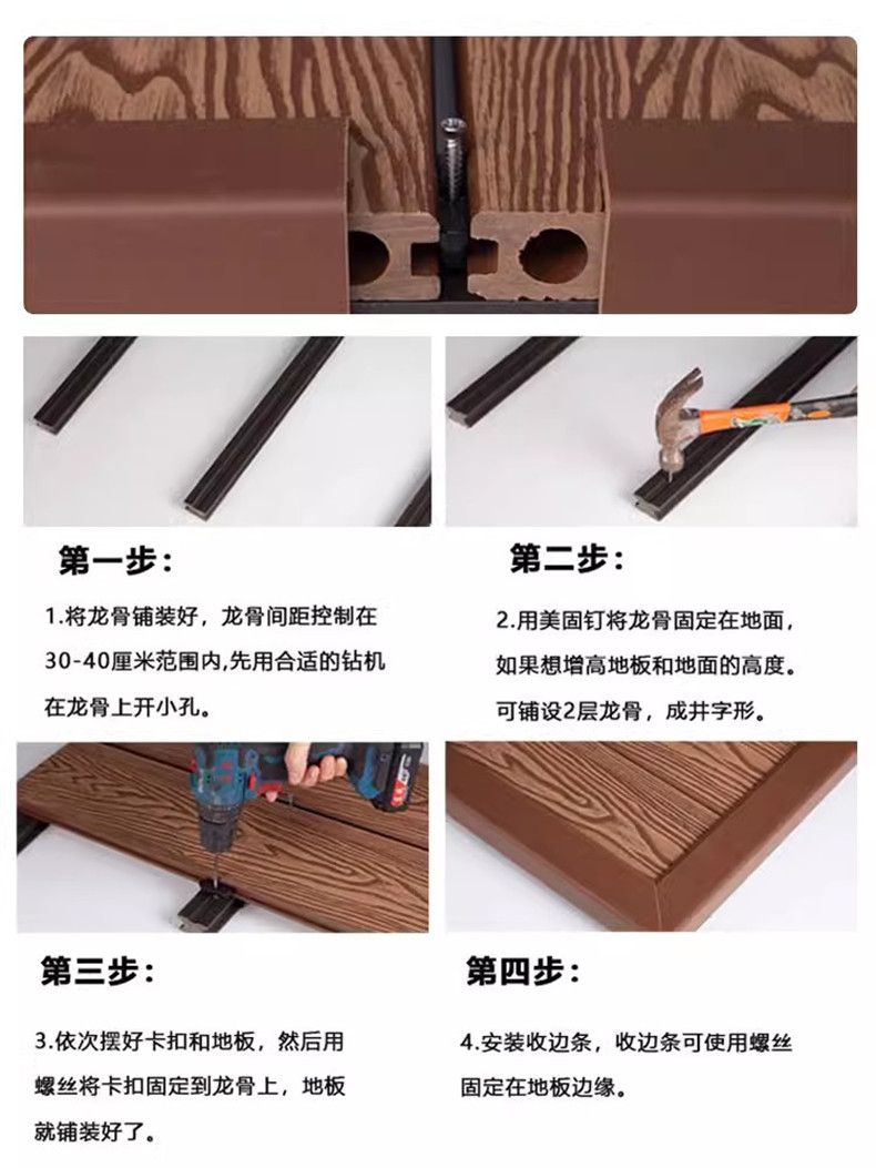 プラスチック木製床材屋外中庭庭園第二世代共押出木製プラスチックボード屋外テラス防食木製床材自己敷設設置