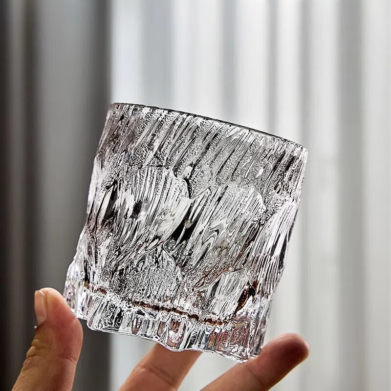 レトロな氷河ガラスカップ ウイスキーグラス クリスタル 高級感のあるワイングラス 氷模様 透明 軽い高級感 家庭用ガラスカップ