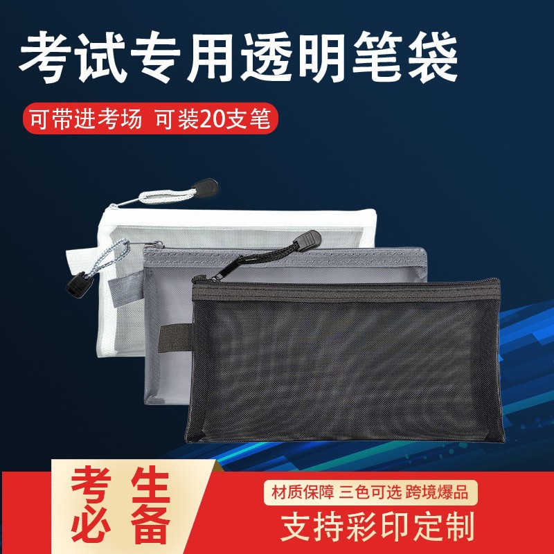 透明網紗筆袋大容量ファスナー収納袋学生試験専用携帯鉛筆袋文房具袋卸売り