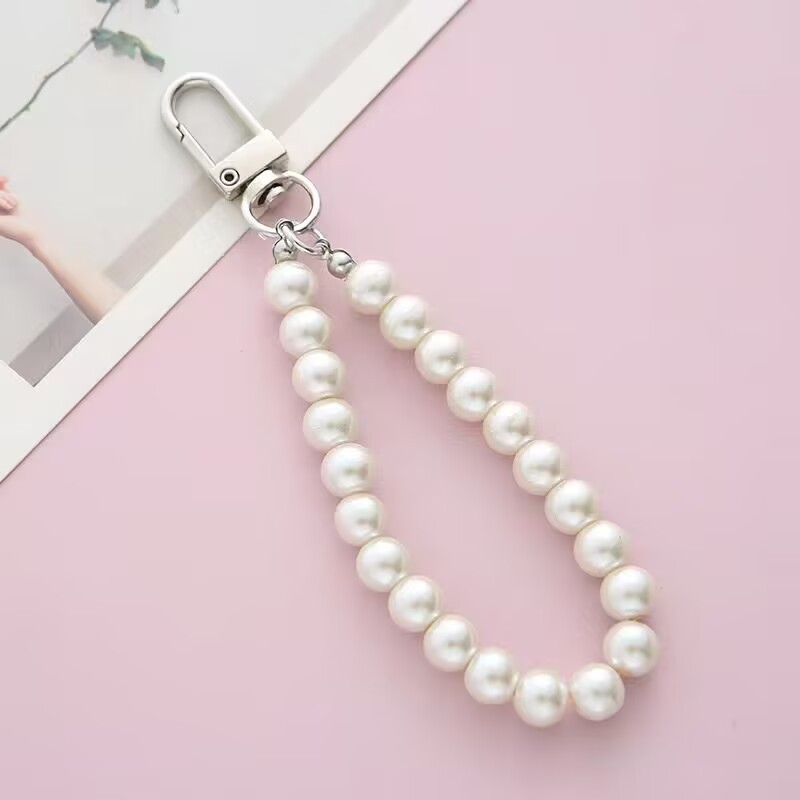 ガラス模造真珠DIY部品携帯チェーン喜糖箱真珠チェーンキーホルダーペンダント