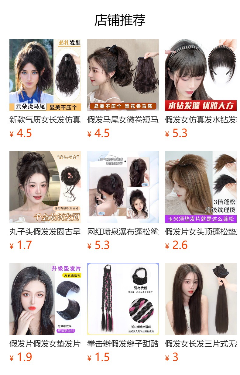 丸頭ウィッグ、ヘアゴム、気質、高頭蓋、ヘアクリップ、つぼみヘアアーティファクト、後頭部ウィッグ、ヘアバッグ