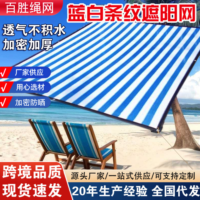 青と白のストライプのサンシェードネットメーカー暗号化された厚みのある日焼け止めネットアンチエイジング中庭屋根サンシェードネット青と白のサンシェードネット