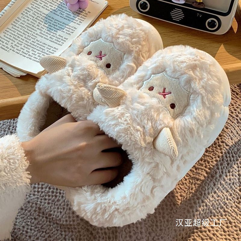 かわいい羊綿スリッパの女性バッグと冬の室内の厚い底滑り止め月子靴とベルベット保温毛卸売り