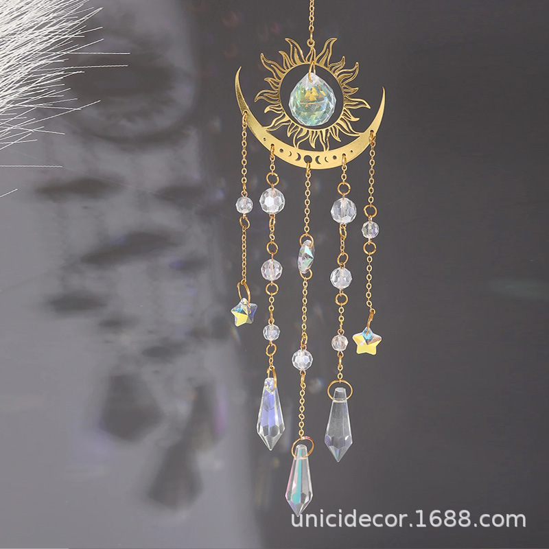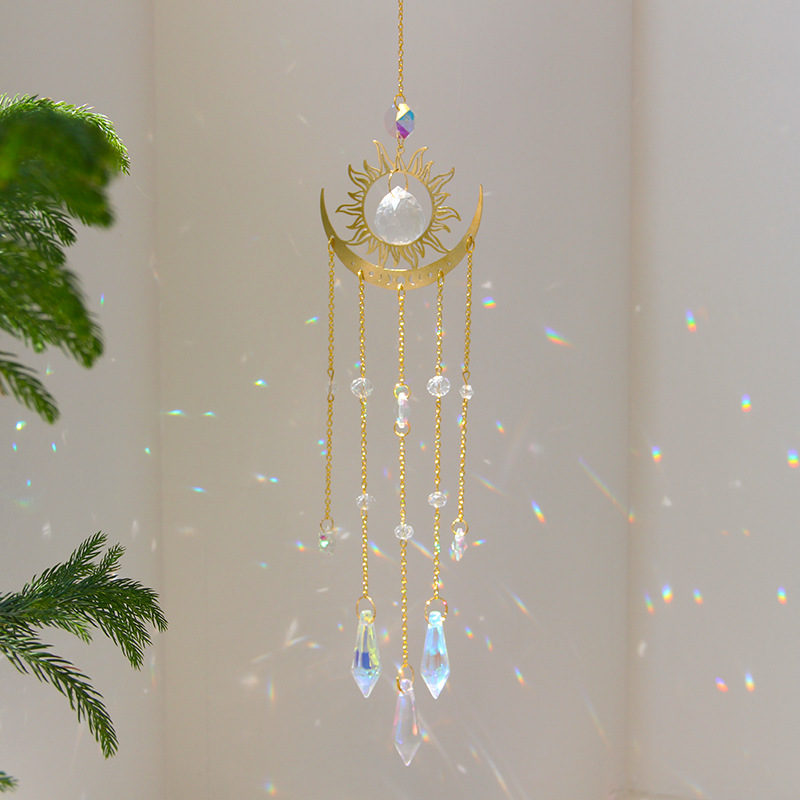 国境を越えた人気の月と太陽のクリスタルペンダント星と月の虹サンキャッチャーペンダント家の窓の装飾ペンダント