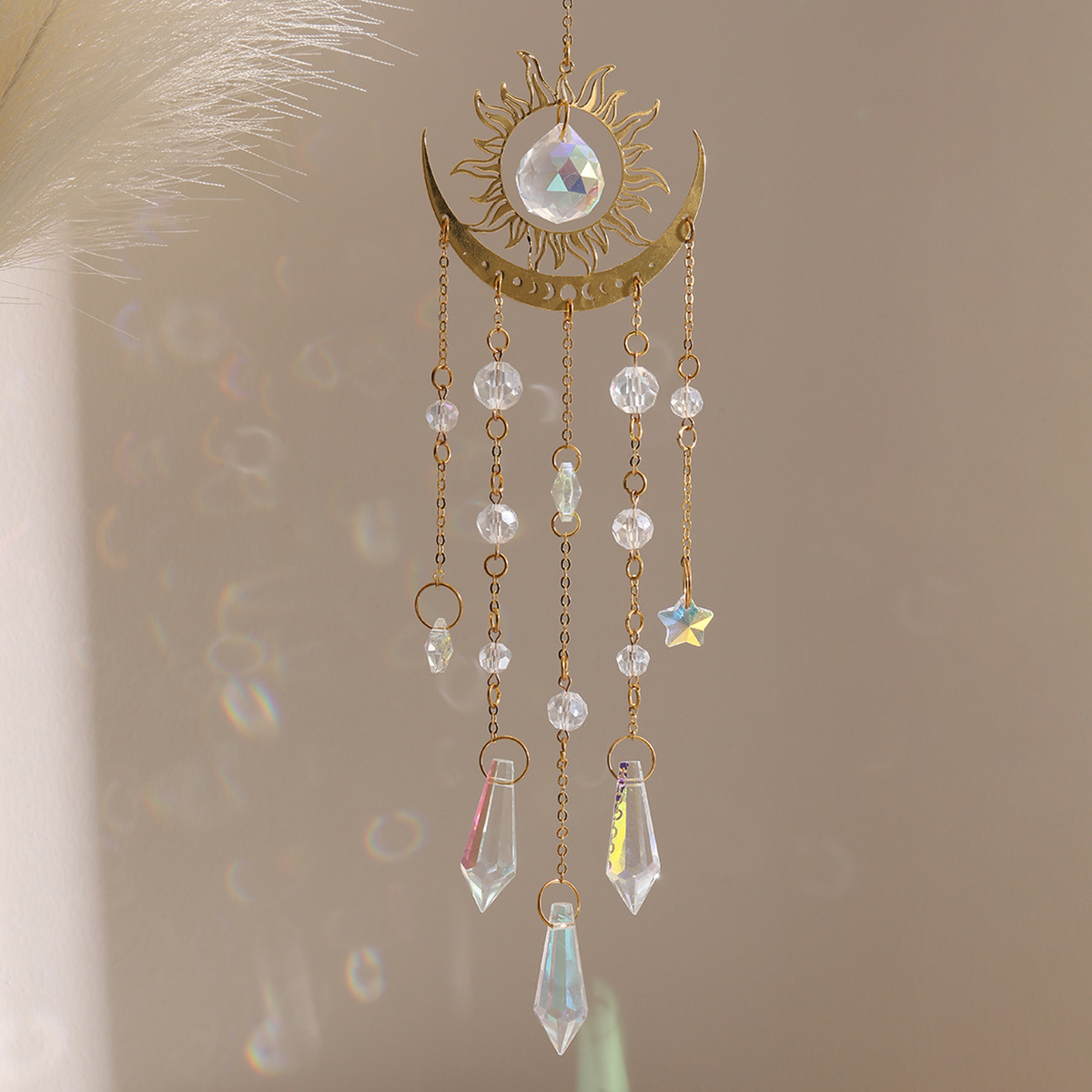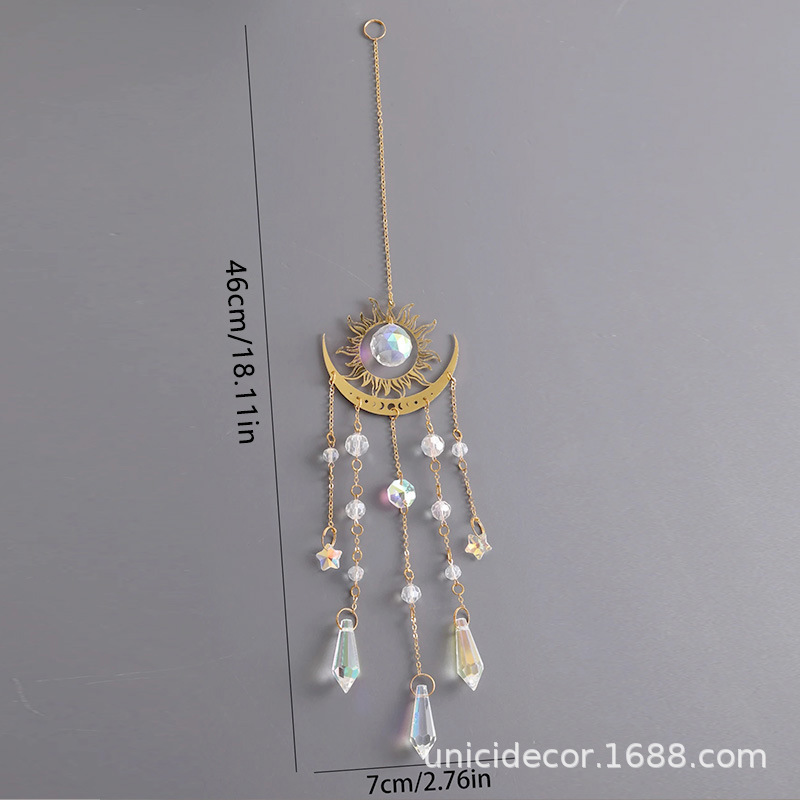 北欧インゴールデン炎スタームーンクリスタルペンダントサンキャッチャーウィンドウガーデンハンギングオーナメント