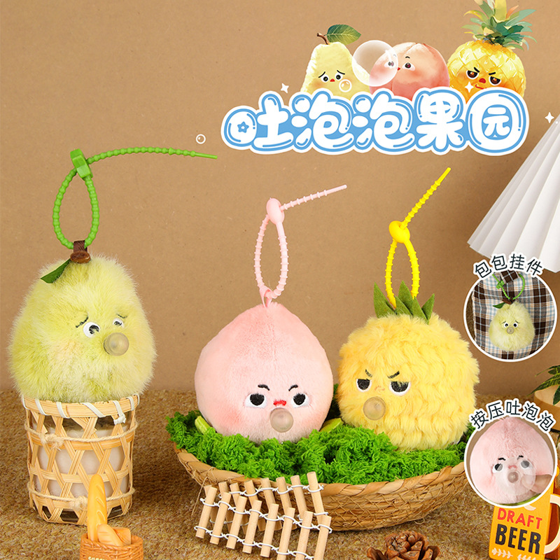 捏捏毛绒玩具按压吐泡泡果园水果挂件解压玩具女生包包挂饰礼品批