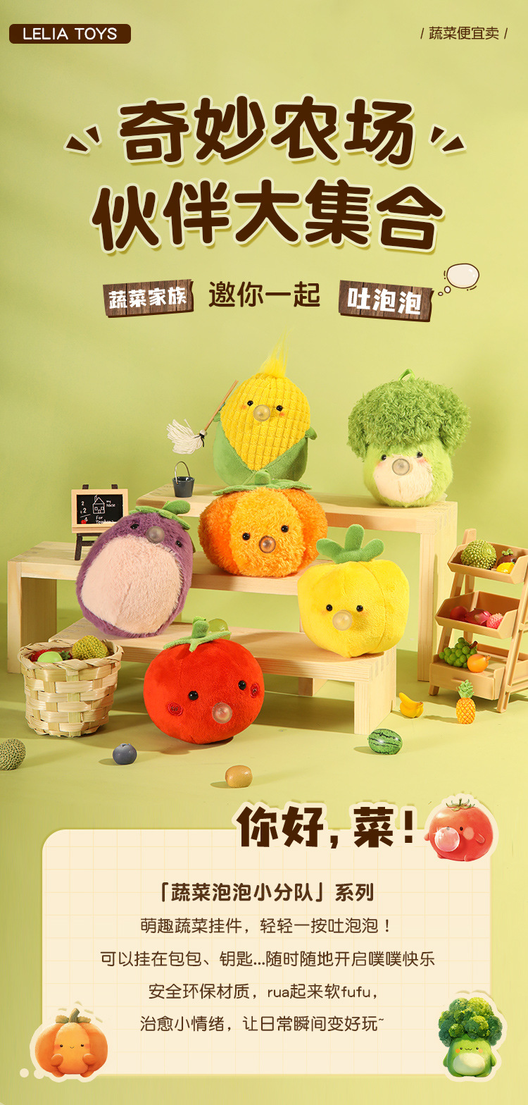 吐泡泡水果蔬菜毛绒公仔娃娃机器公仔背包挂件玩偶婚礼生日礼物