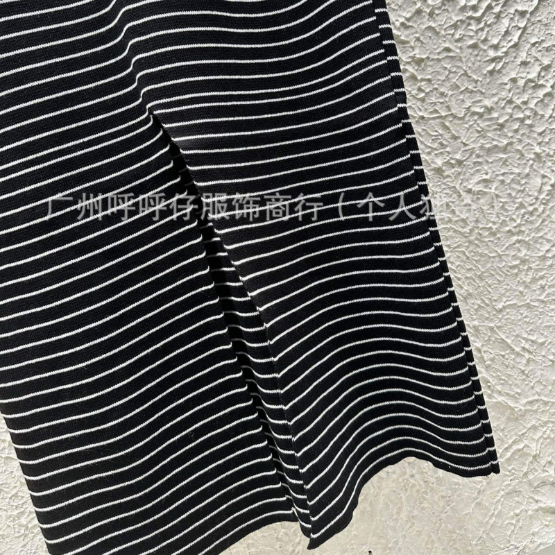 mm25 夏新作フレンチピュアディザイアストライプゴールドラインレターニットサスペンダードレス女性用