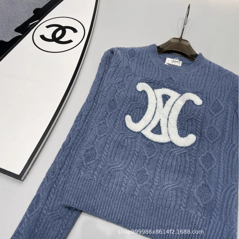 潮牌ce24秋冬新款慵懒感凯旋门绣花百搭薄款套头针织毛衣女
