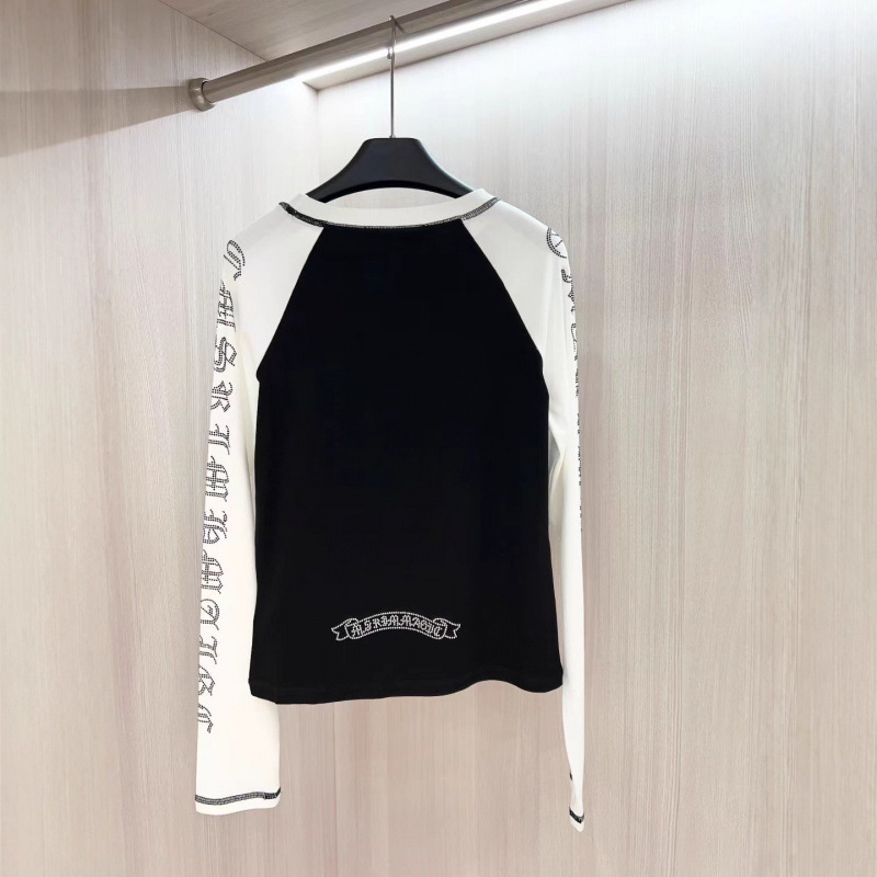 ch25秋冬新款复古潮牌重工烫钻图腾拼色打底衫