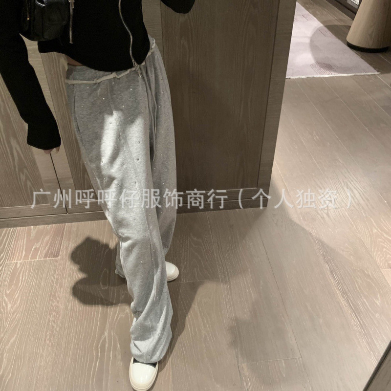 mm25 春夏新作韓国風カジュアル刺繍文字ホットダイヤモンド多用途グレースウェットパンツ女性用