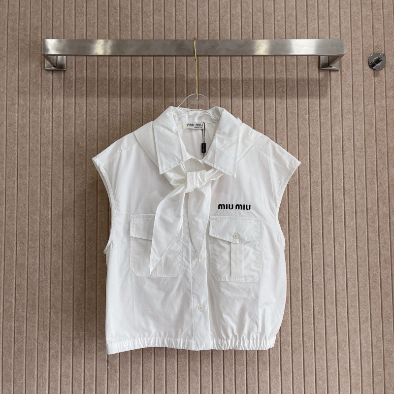 25春夏新款小短款可爱少女风双口袋领结无袖背心衬衫女款