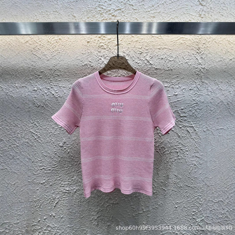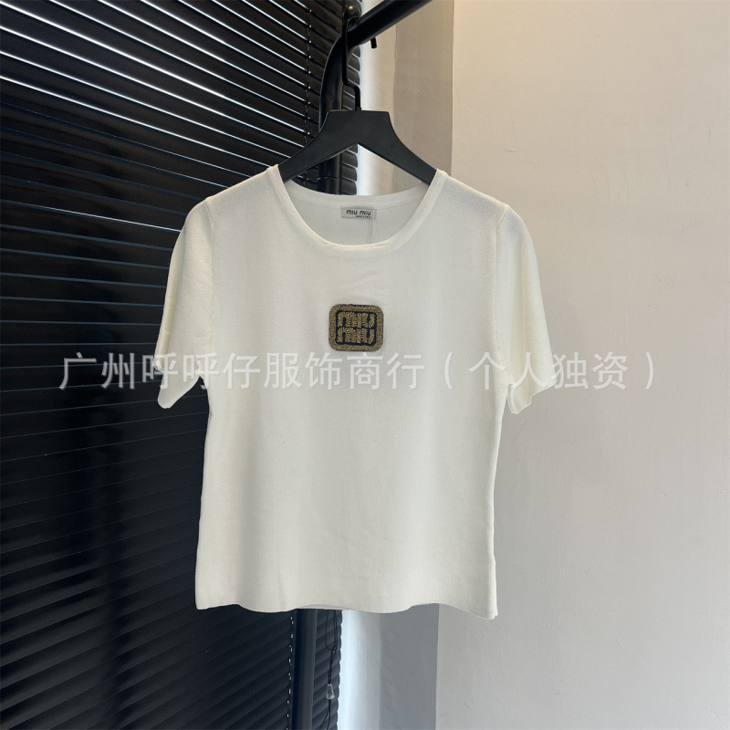 mm25 新しい夏のスタイルのクラシックな多用途の金糸文字刺繍ラウンドネックニット半袖レディースモデル