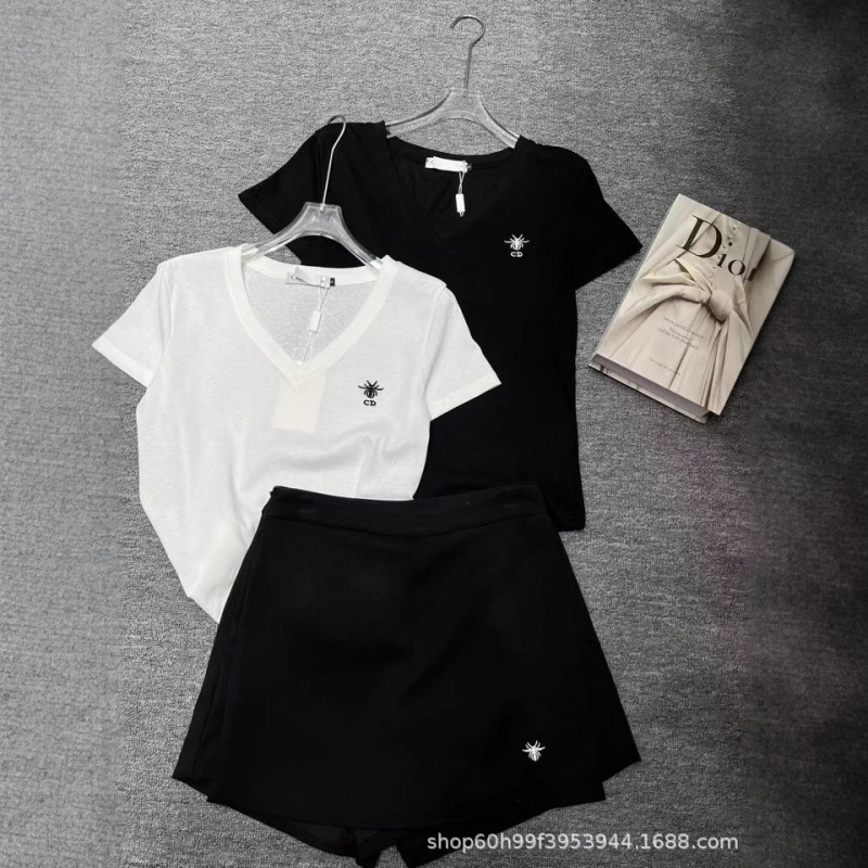 25夏新作 軽量で万能な刺繍入りビーブラウスVネックスリムフィット半袖Tシャツ