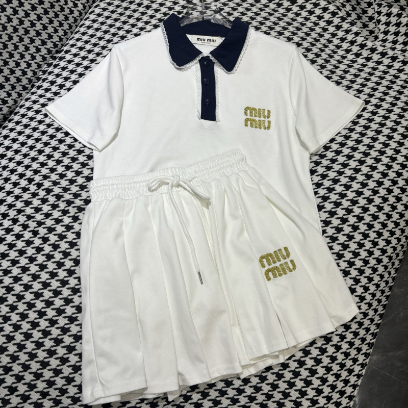 mm25春夏新款甜美学院风翻领蕾丝边短袖➕半裙套装 三色