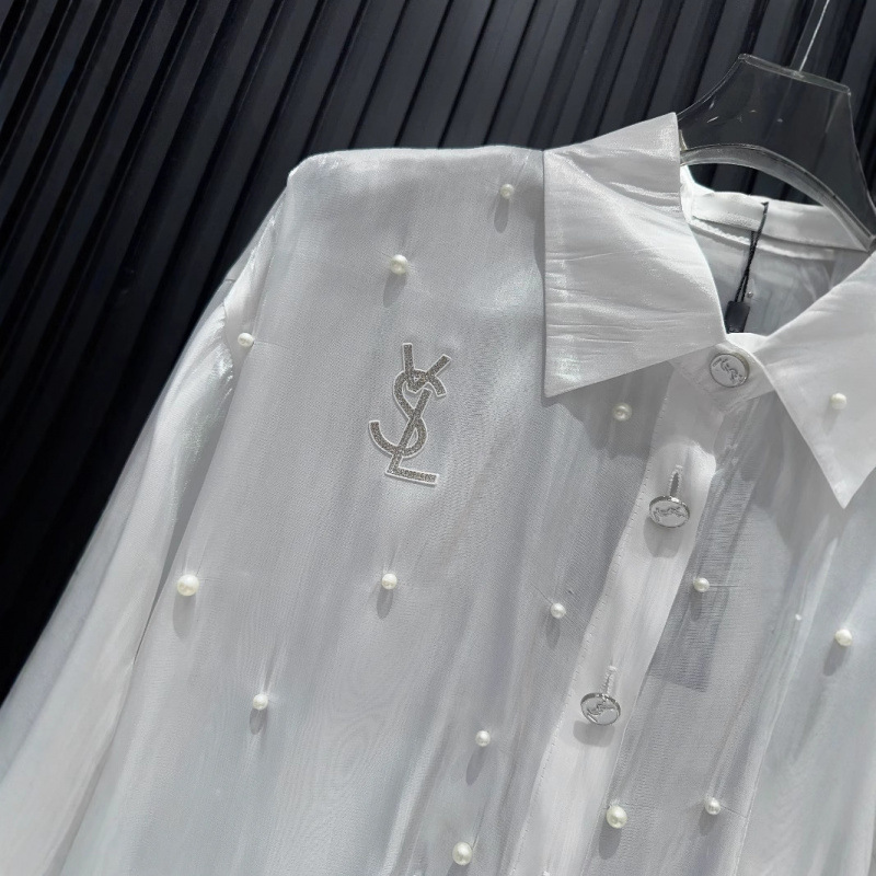25春夏の新型の全身の玉は色の薄い通気性の長袖のシャツの女性の上着にぶつかります。