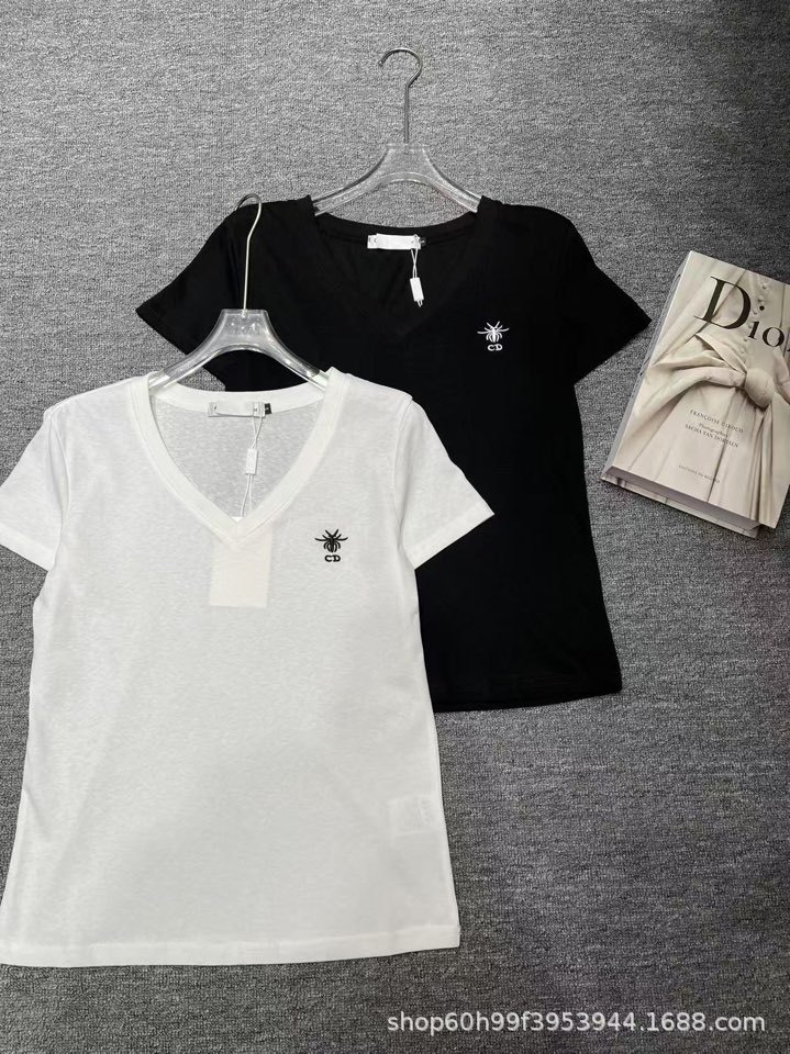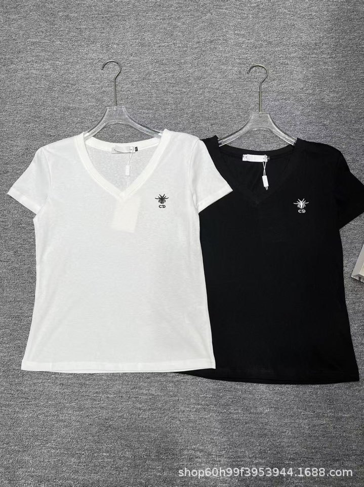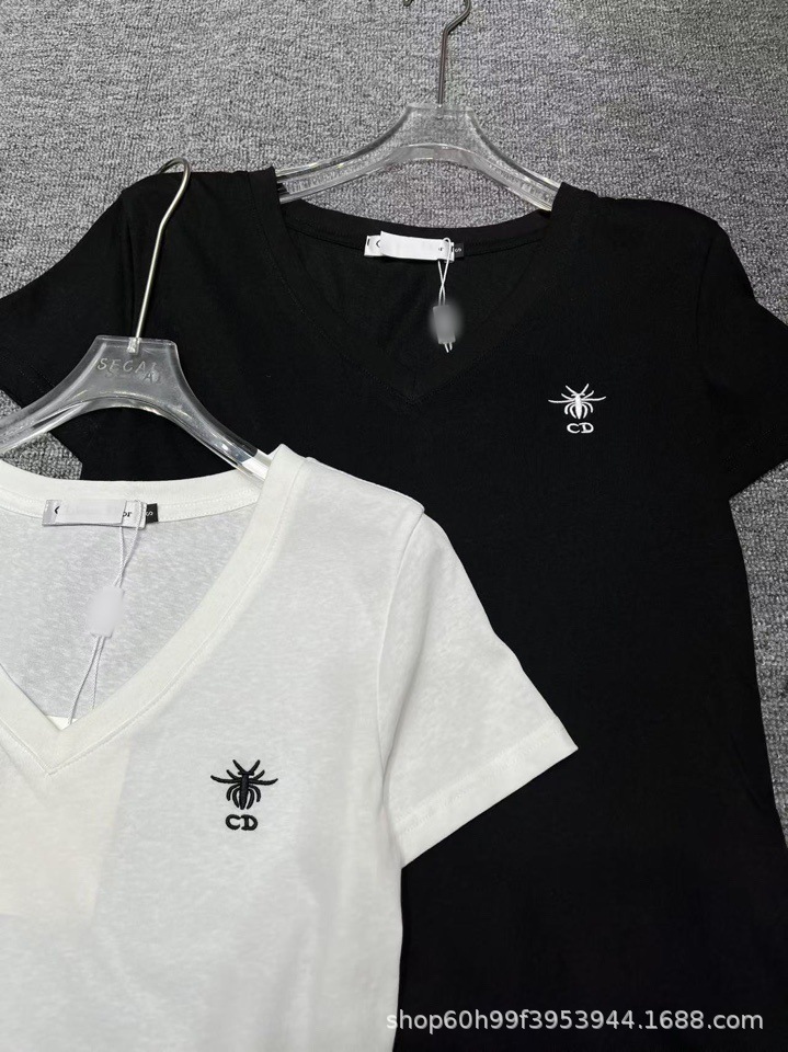 25夏新作 軽量で万能な刺繍入りビーブラウスVネックスリムフィット半袖Tシャツ