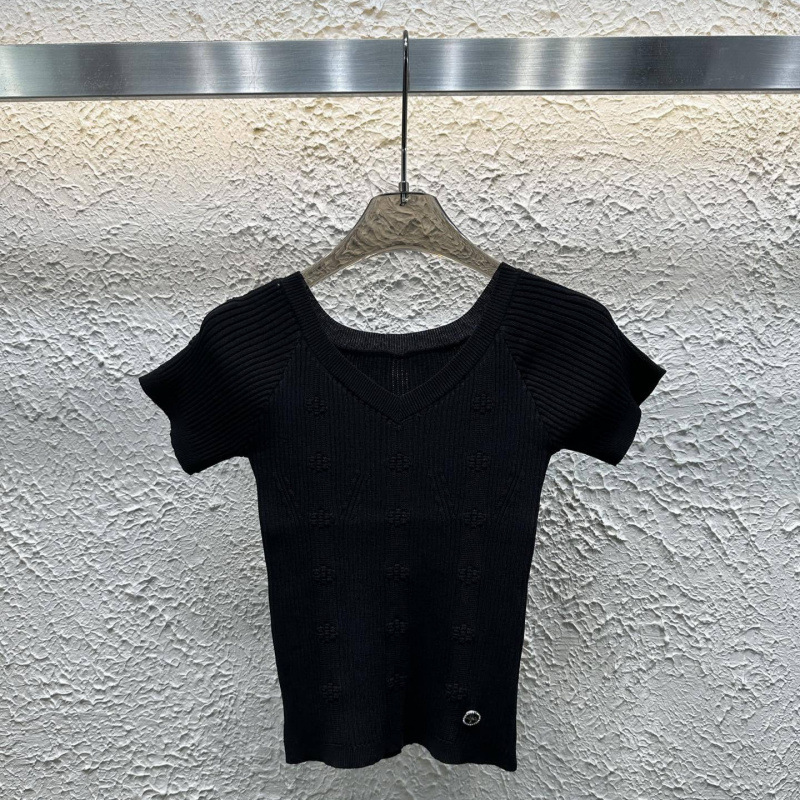 25夏新作シンプル無地ジャガードVネックニット半袖スリムフィット