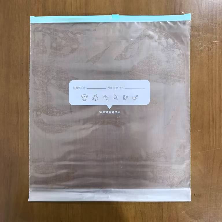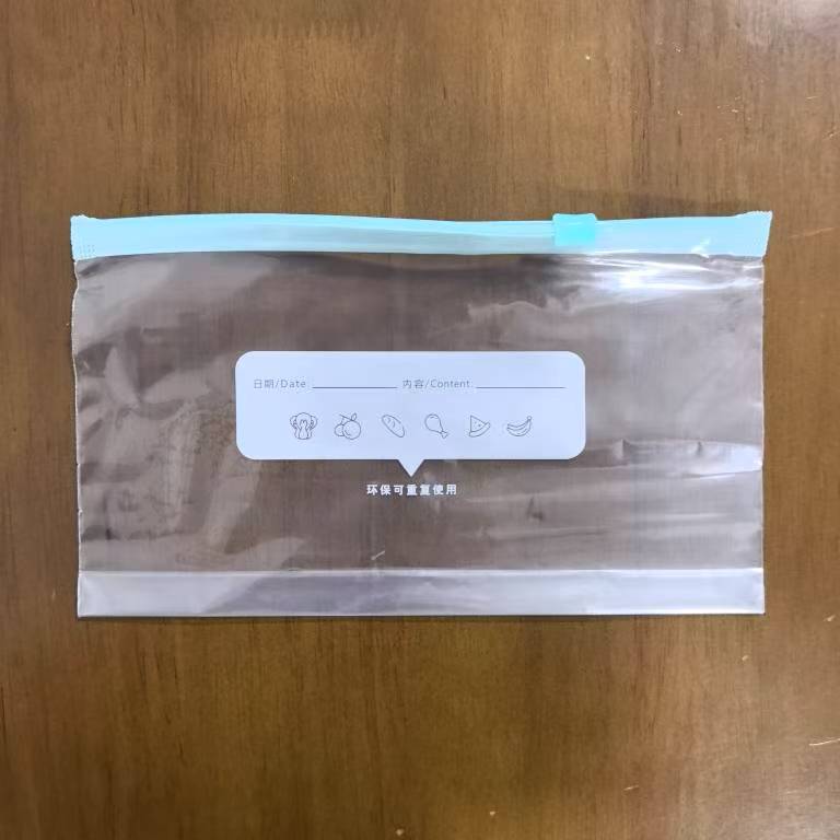 Transparent zipper food storage bag, durable plastic bag, color label, sealed bag, suitable for fruit, vegetables, beans and meal preparation organization, food storage