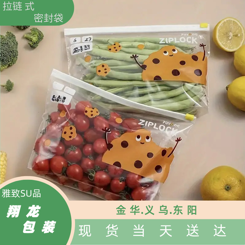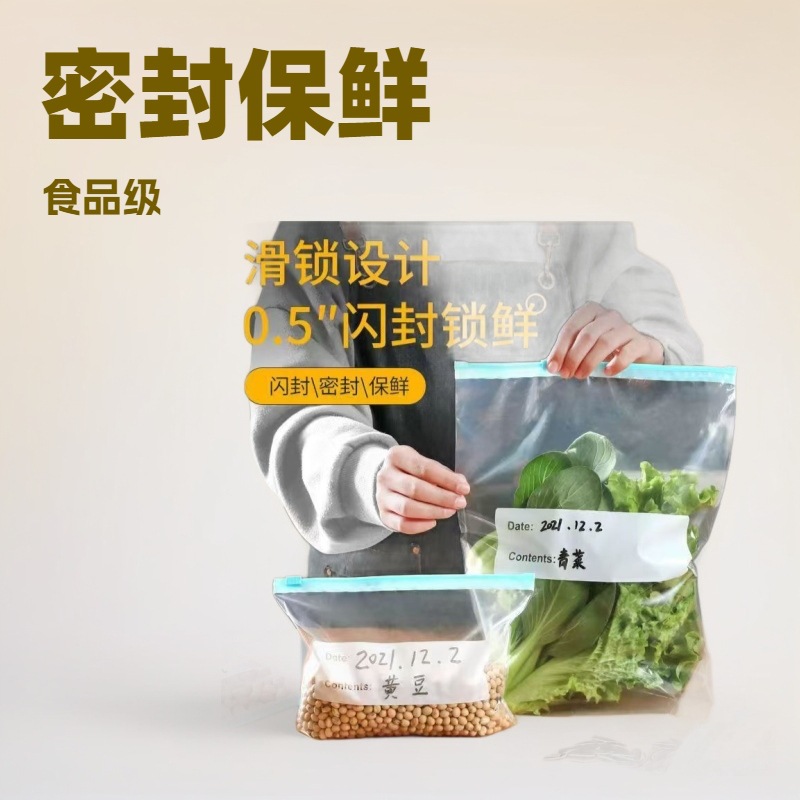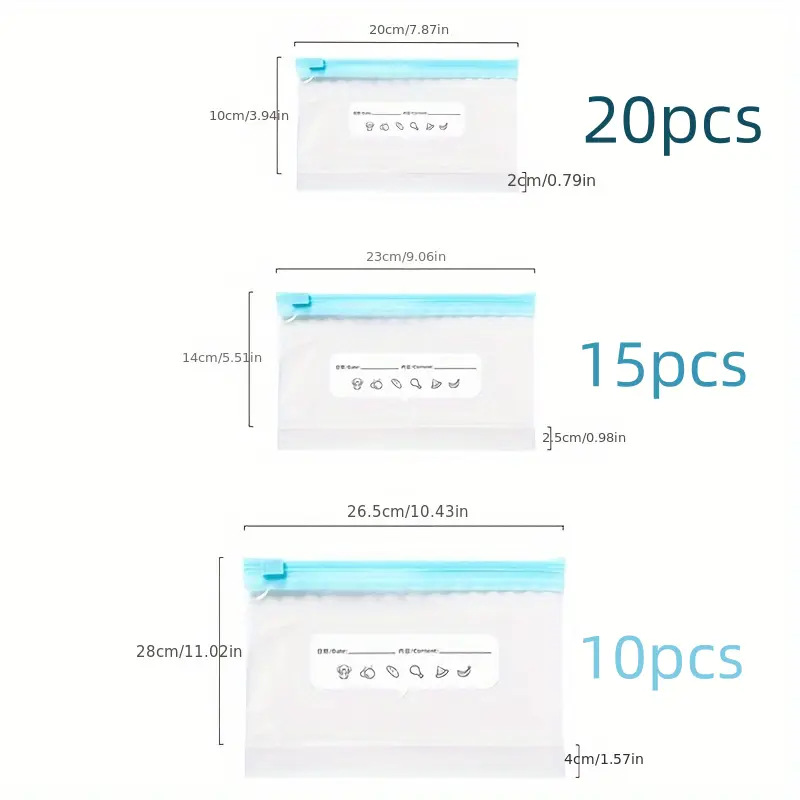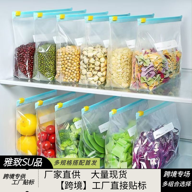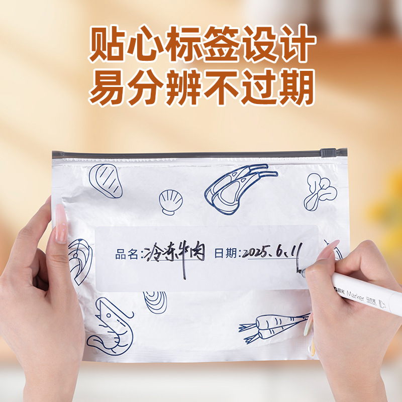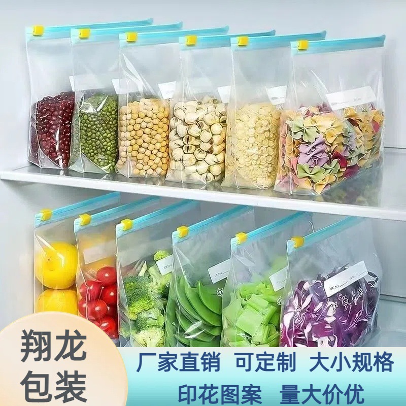 透明拉链食品收纳袋,耐用塑胶保鲜袋,带彩色标签,密封袋,适用于水果、蔬菜、豆类和膳食准备组织,食品储存