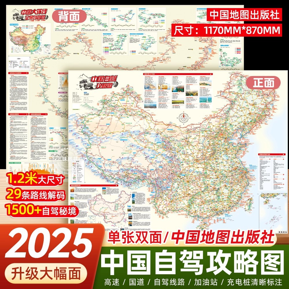 中国旅游2025新版自驾攻略地图展开约1.2米双面版29条自驾线路全