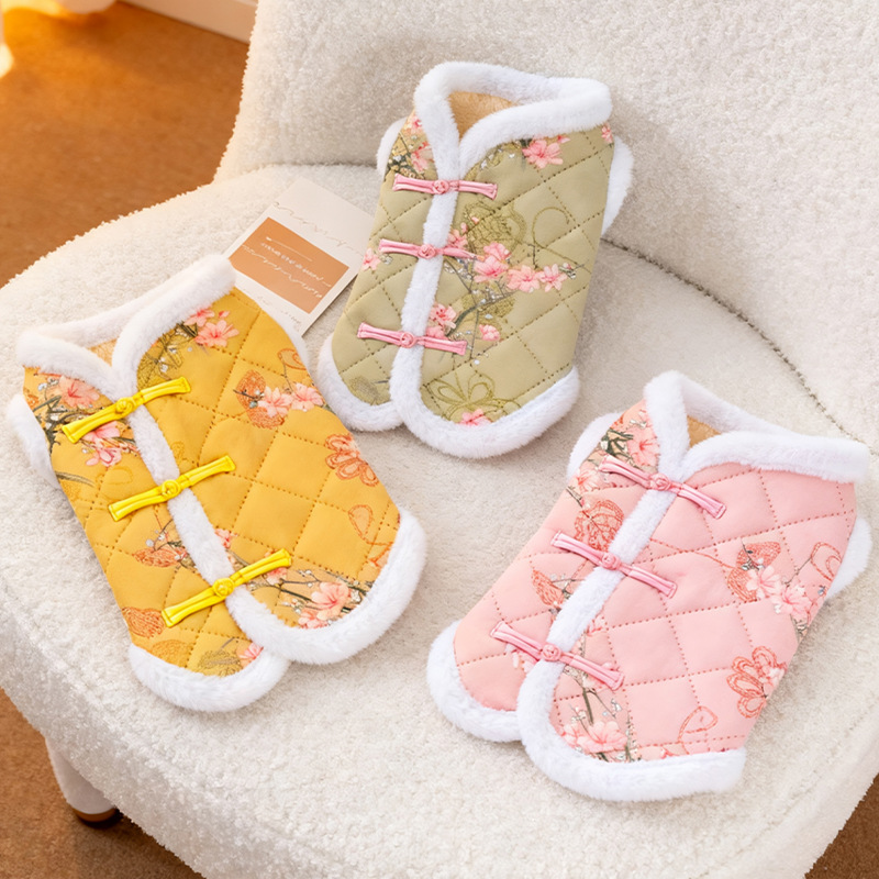 宠物狗狗衣服唐装花卉国风盘扣衣服马甲秋冬款加厚保暖比熊约克夏